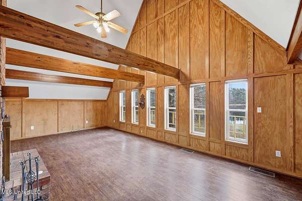 Welcome to peaceful country living on the water. This well-kept, custom-built, one-owner home offers beautiful lake views and a comfortable, functional layout. Fresh paint throughout the entire home enhances the bright and inviting interior. The home features four bedrooms and two bathrooms, with the primary bedroom and an additional secondary bedroom located on the main level, and two more bedrooms upstairs. The spacious living area showcases steep ceilings, large windows overlooking the property, and a charming wood-burning fireplace. A hallway pantry provides extensive storage alongside multiple closets throughout the home. The kitchen includes new appliances and overlooks the lake, creating a warm and welcoming space. Outside, a wraparound deck covers approximately three-quarters of the home, offering ample room for relaxation and outdoor enjoyment. Additional features include an easy-access crawl space with a brand-new entry door. All of this is just minutes from town, providing the perfect blend of privacy and convenience.