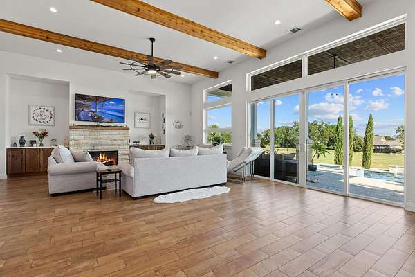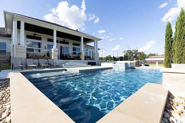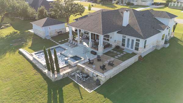 Welcome to the pinnacle of luxury Hill Country living located at 109 Tambra Lea Lane. This exquisite custom smart home, designed and built by Prince Development, is in the prestigious Oak Bend Estates community of Liberty Hill, Texas. Situated on 2.136 acres, this beautifully designed Estate offers the perfect blend of modern elegance and Hill Country charm. Inside, the spacious floor plan features 4 bedrooms and 4.5 bathrooms, each bedroom with a private en-suite, laid out on custom porcelain tile flooring with herringbone inlay features. Separate home office and laundry room. The open concept living, dining, and kitchen area is filled with natural light and showcases custom windows with picturesque views of the serene backyard. Step outside into your private oasis, greeted with a heated in-ground pool and spa complete with cool-tech flooring, UV filtration system, an outdoor shower, and a custom fire pit-ideal for entertaining or relaxing. Home is prepped for an outdoor kitchen. Expansive covered patios at the front and back allow you to enjoy the peaceful outdoor setting year-round. Enjoy two 2 car garages with the convenience of one attached and one detached. Extensive addition parking for guests. Additional standout features include a fully equipped butler's pantry, electric vehicle charging station, a full in-home water filtration/water softener system with reverse osmosis, raised organic garden beds, full sprinkler system, Vivint home security system, and a pre-poured concrete pad ready for a future casita, guest house, or shop-to also include matching limestone situated on the property. Zoned to the highly acclaimed Liberty Hill ISD, this property offers the ultimate in upgrades, functionality, and location. Don't miss this rare opportunity to own a truly custom estate home that captures the essence of Hill Country living. Schedule your private showing today with a two-hour notice. Pre-qualified buyers only.