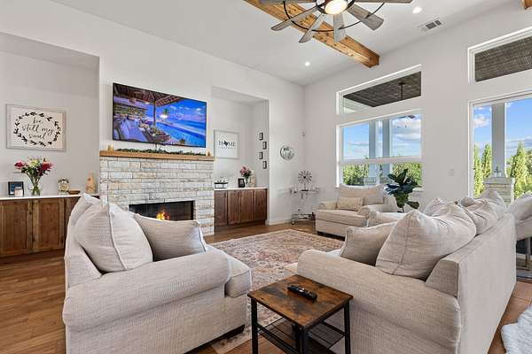 - Breakfast Bar, Ceiling Fan(s), Ceiling-High, Double Vanity, High Speed Internet, In-Law Floorplan, Kitchen Island, Multiple Dining Areas, No Interior Steps, Open Floorplan, Pantry, Primary Bedroom On Main, Recessed Lighting, Smart Home, Stone Counters, Walk-In Closet(s)