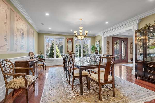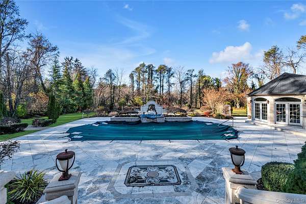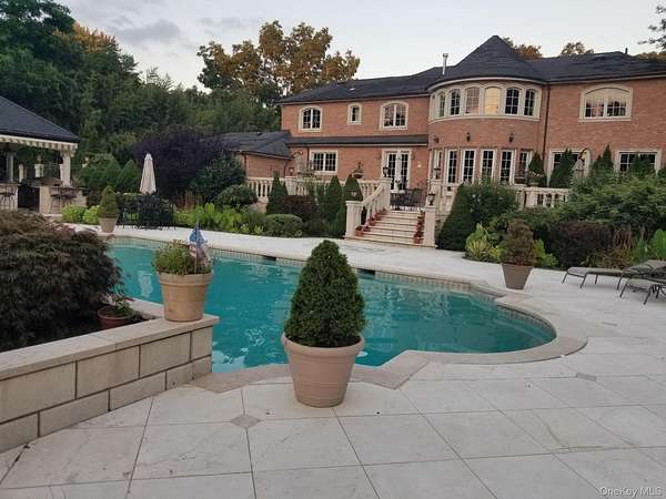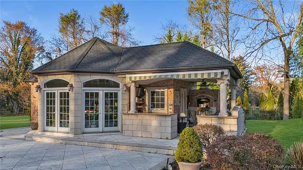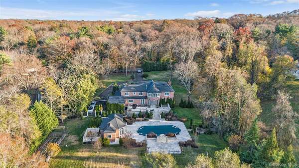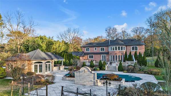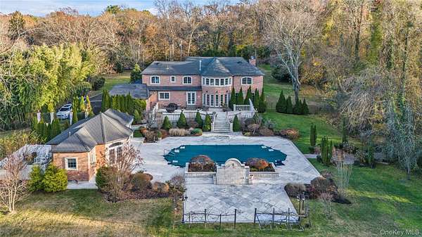New to the market in one of Brookville's most prestigious corridors and locations within the Jericho School District, 109 Wheatley Road offers timeless elegance on 2 flat, beautifully manicured acres. Featuring an unmatched resort-style backyard, the property includes a salt-water swimming pool, hot tub spa, expansive travertine marble patio, professional bocce ball court with seating, vegetable garden, and separate all brick pool house with outdoor kitchen and pizza oven. The west-facing backyard offers beautiful sunset views, with colorful landscaping year-round and mature nectarine and fig trees lining the garden. Set back far from the road for exceptional privacy, the home also offers a three-car garage plus generous courtyard and side parking. This stately, full brick colonial welcomes you with a grand two-story front to back entrance foyer that sets the tone for gracious living throughout. Music room and den flow nicely to the library/study. The home features 6 bedrooms and 5.5 baths. Formal great room with gas fireplace and a banquet sized dining room with mural accommodates larger dinner parties. True chef's kitchen, 6-burner gas Wolf range with double oven, two dishwashers, two sinks, centre island seating plus breakfast room with french doors to the backyard. Natural gas for heating and cooking. Unfinished basement with 10' ceilings, steel beam construction, engineered floor beams and outside entrance. The pool house has a basement, too. Just imagine yourself living and entertaining here on this private estate. Easily accessible to major roads and just minutes from the Long Island Expressway, shopping, restaurants, parks, country clubs, train transportation and quick to the international airports in New York. The Village of Brookville on the North Shore of Long Island offers residents a supreme lifestyle, and this house is solidly built to enjoy on day one.