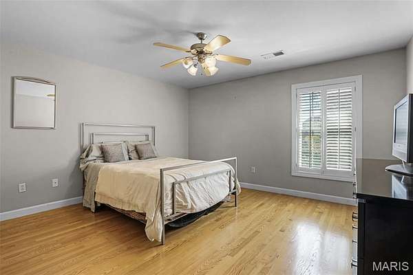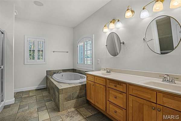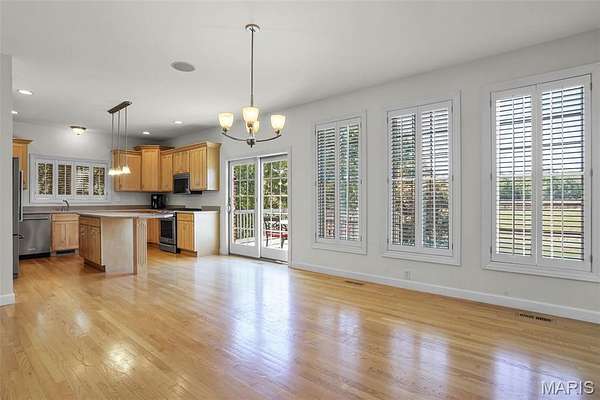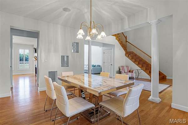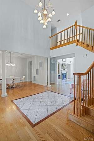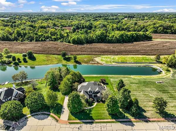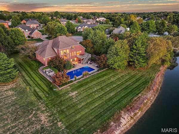 If you've been searching for a home with square footage and serenity, look no further. 109 Yorkshire Ct, located in the upscale Castle Ridge Estates neighborhood, has nearly 5,000 sq ft of living space. This 5 Bdrm/5Ba home is situated on a 2 acre cul-de-sac lot that backs to the subdivision lake. Enjoy unobstructed picturesque views of the sunset from your deck on the main level or perhaps while relaxing in the 20x45 ft heated, saltwater pool. The all brick 1.5 story home has a 2 story great room with abundant windows to enjoy those same gorgeous views. The eat in kitchen features all new stainless steel KitchenAid appliances (2025), Corian countertops and center island. Throughout the home you'll find wood plantation shutters as well as a whole house sound system. The home has CAT5 wiring, zoned HVAC with a NEST thermostat on the main, and it is wired for ADT security. The main floor has a separate office space with built-ins and a closet which could be utilized as a bedroom if needed. Upstairs through double doors the first bedroom has its own vanity area, walk-in closet and en suite bath with separate tub/shower. The remaining two upstairs bedrooms share a jack & jill bath. The walkout basement includes ample living space, a wet bar, gaming table, a home gym, full bath and 5th bedroom. All of this living space and yet plenty of unfinished space for storage. You could add an additional bedroom with an existing window as well. With all neighbors also having sizable lots, you get the pros of neighborhood living while maintaining privacy. The backyard oasis is great for entertaining or perfect for tuning the world out. Mature landscaping and outdoor irrigation system keep the property lush & green. Simply put, this home checks all the boxes on your list of must haves. Conveniently located between Troy & O'Fallon, Triad schools, and minutes from interstates 55 or 64...don't miss this opportunity to make this slice of heaven yours!