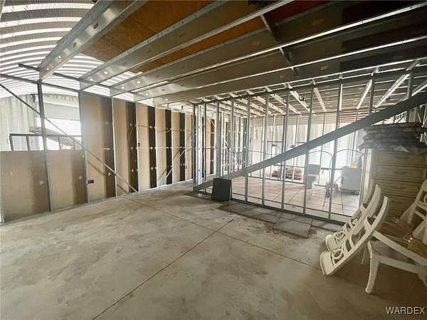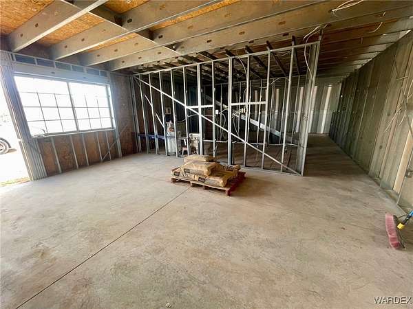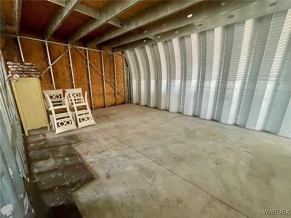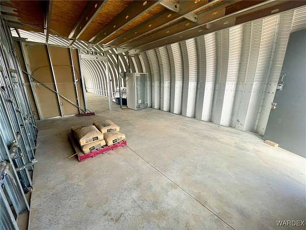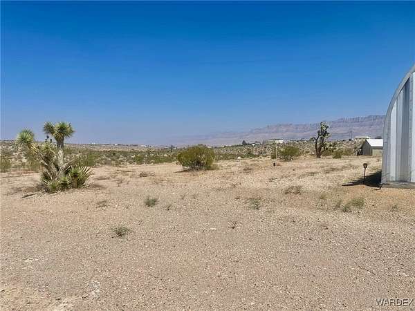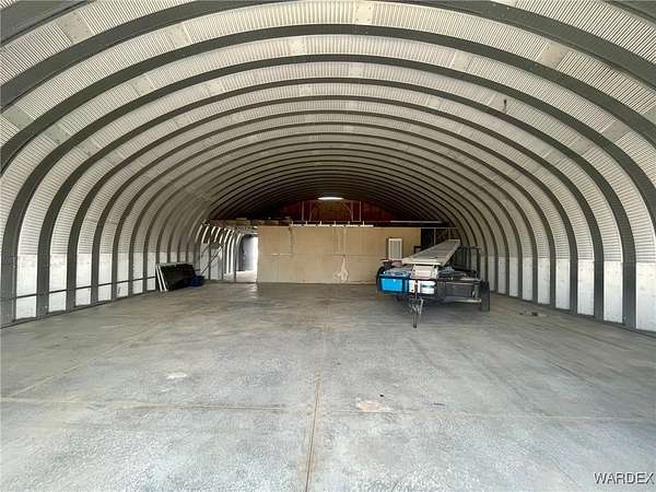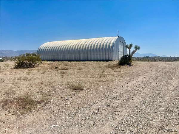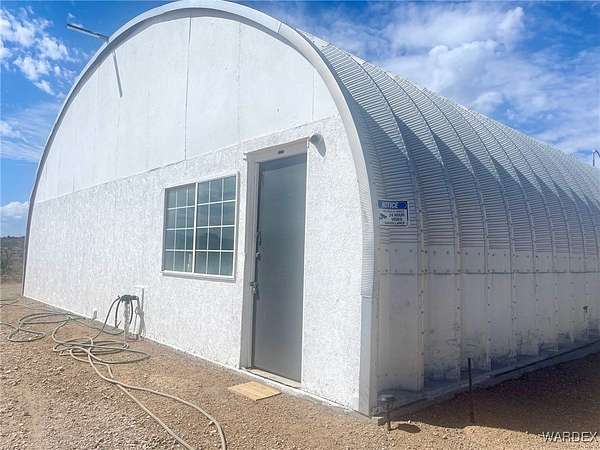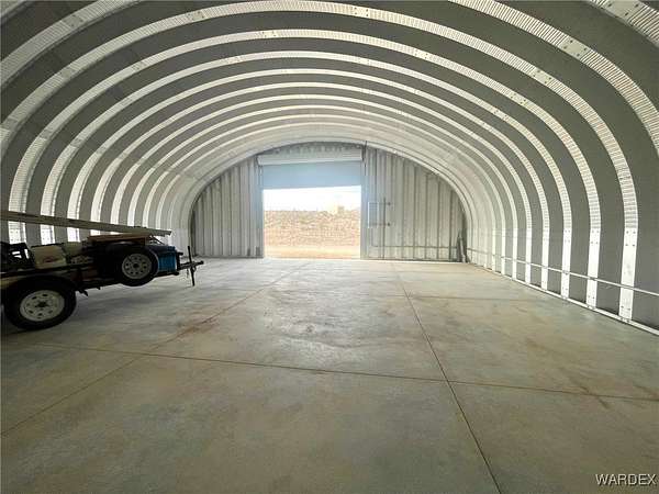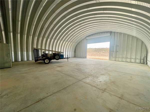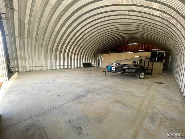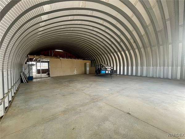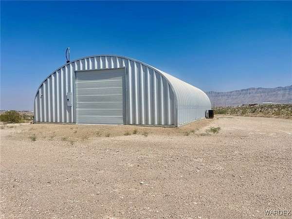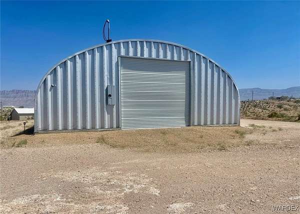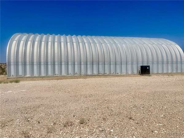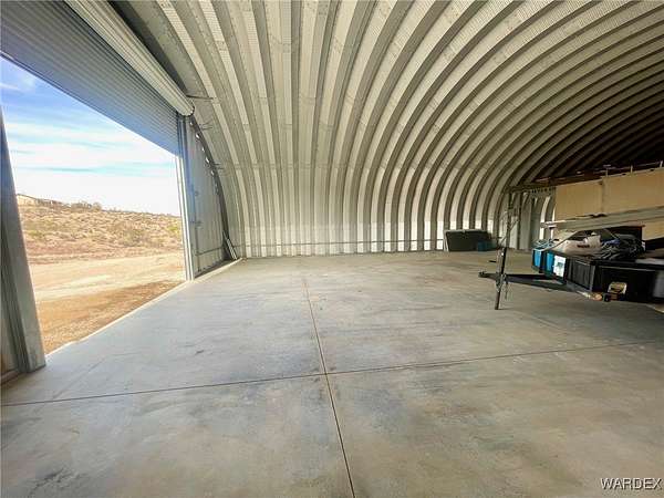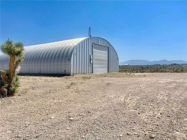 Welcome to this unique and versatile property in beautiful Meadview, AZ with gorgeous views of the Grand Wash Cliffs! Situated on a spacious one-acre lot and with a generous 2400 square feet, this quonset hut provides ample space and endless possibilities. The unfinished living area spans 800 square feet with metal framing in place. The ground work is done, it just needs the finish work completed. An additional loft space awaits your creative vision. With an approximate 12 inch concrete base floor, the structure boasts an impressive 1600 square foot garage with an 15 x 15 garage door, offering ample room for up to six vehicles. Whether you are a car enthusiast, need room for your large RV, need extra storage, or plan to use it for a workshop, this expansive garage is sure to meet your needs. Electricity is available to be brought on to the property. All electrical wiring is in place inside the building. With two driveway entrances, accessibility is a breeze, and the extra cleared area in the back provides even more potential for expansion or additional structures. Embrace the opportunity to make this property your own and enjoy all that Meadview has to offer.