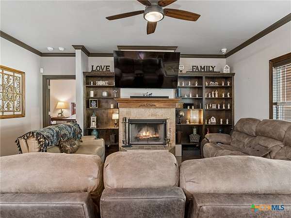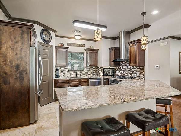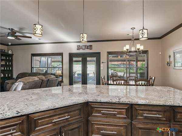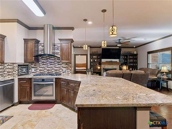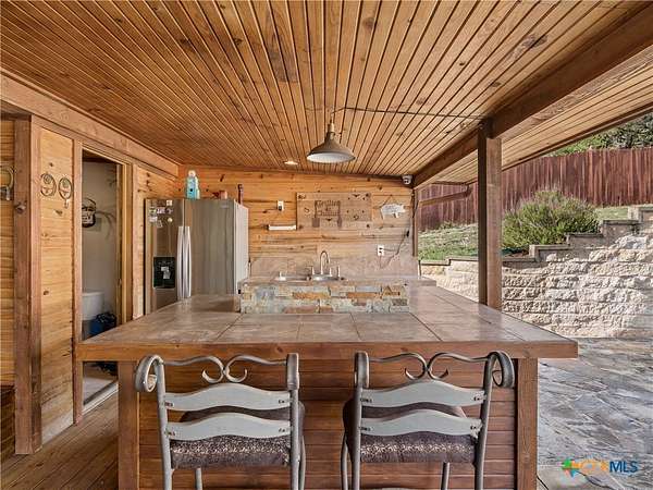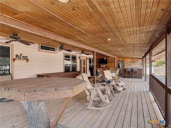 Nestled in the scenic Texas Hill Country, this inviting property at 1090 Grand Pass in Canyon Lake offers the perfect blend of tranquility and convenience. Surrounded by mature trees and natural beauty, the home provides a peaceful retreat while still being just minutes from Canyon Lake, local parks, and popular dining spots. Inside, you'll find a thoughtfully designed layout creating a warm and welcoming atmosphere. The kitchen is well-equipped for everyday living and entertaining, featuring gas cooking, ample cabinetry, and generous workspace. Comfortable bedrooms provide restful retreats, while the primary suite offers privacy and functionality. Significant updates add peace of mind, including a roof replaced in June 2021 and an HVAC system updated in April 2022. Step outside to truly appreciate everything this property has to offer. The outdoor living space is a standout feature, complete with a fully equipped outdoor kitchen featuring a commercial-grade griddle-perfect for hosting gatherings. A convenient half bathroom is located near the outdoor kitchen, making entertaining even easier. The expansive space also includes covered RV or boat parking, ideal for those looking to enjoy nearby Canyon Lake to the fullest. Whether you're relaxing with your morning coffee, entertaining guests, or enjoying the serene Hill Country surroundings, this property offers a versatile lifestyle. Conveniently located with easy access to highways, shopping, and recreation, this home is a fantastic opportunity to experience the best of Canyon Lake living.