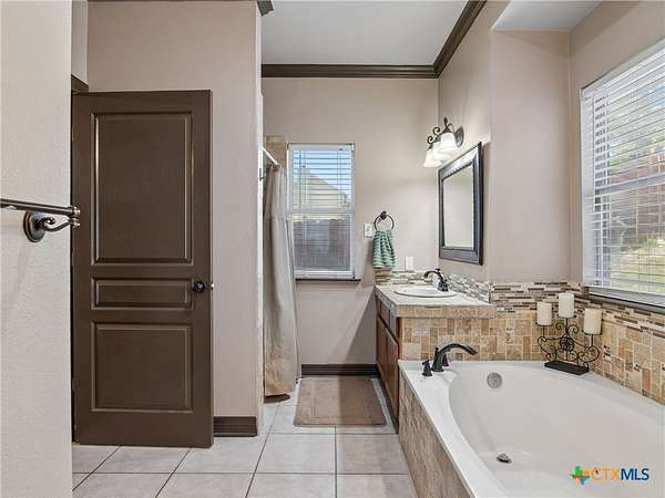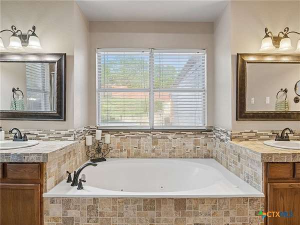 - Breakfast Area, Breakfast Bar, Ceiling Fans, Chandelier, Crown Molding, Eat In Kitchen, Entrance Foyer, Garden Tub Roman Tub, Granite Counters, High Ceilings, Kitchen Dining Combo, Kitchen Family Room Combo, Open Floorplan, Pantry, Recessed Lighting, Separate Shower, Solid Surface Counters, Tub Shower, Vanity, Walk In Closets