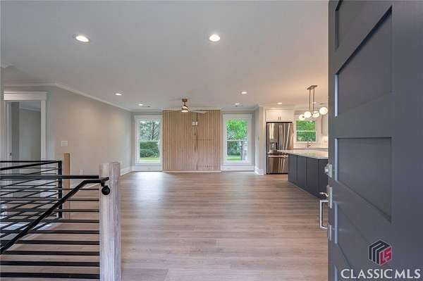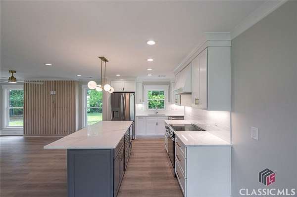 Exceptional and total renovation in North Oconee. This beautiful and functional home has been renovated to please! Every inch of this home has been improved over the last year. The charming front porch overlooks the rolling yard and quiet street and features custom railings, new columns, and new shutters. Upon entering the home, one is welcomed by a bright, open great room that adjoins the kitchen and dining space. New custom cabinetry, countertops, backsplash, appliances, light fixtures, and large kitchen island, as well as new wood floors, custom iron railing, and wood feature wall are all notable improvements. There are three bedrooms on the main level. The owners' suite is bright and spacious with his/hers closets and large bath. Two secondary bedrooms share a hall bath on this level. Downstairs on the terrace level, you'll find a 4th bedroom with full bath and walk-in closet. Additionally, there is ample storage space and room to finish another sitting area or bedroom. The laundry room is conveniently located on the main level near the garage with access to a quiet back patio surrounded by large hardwoods. All new windows, doors, hardware, flooring, and tile. The storage building in the backyard has a new roof and new paint job. 1090 Kenway Drive is located close to Hwys. 316 & 78 and is on a 2.68 acre lot in a non-HOA community--allowing flexibility for its new owners.