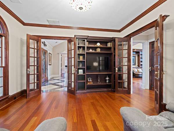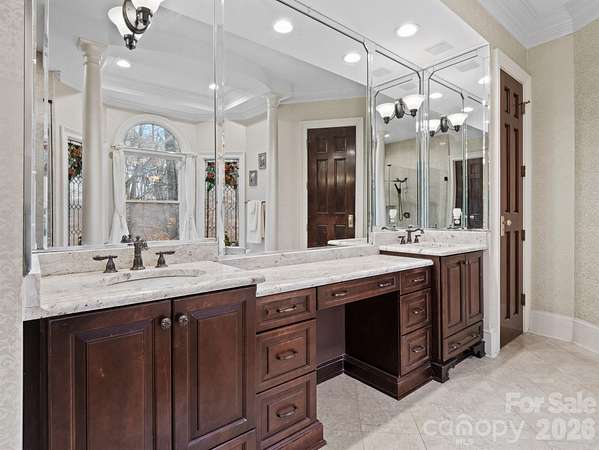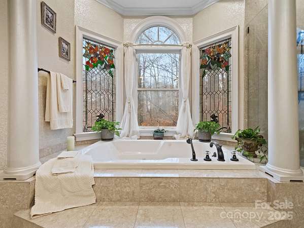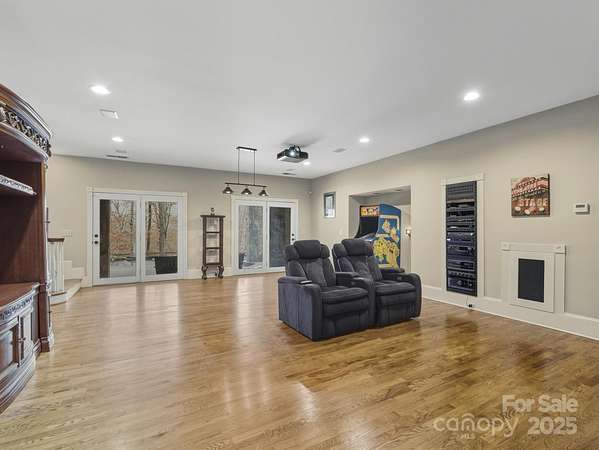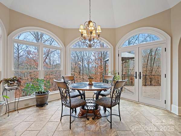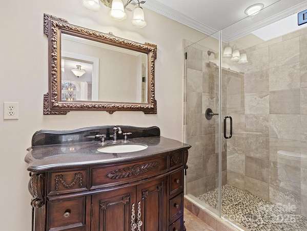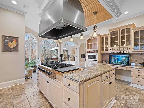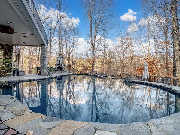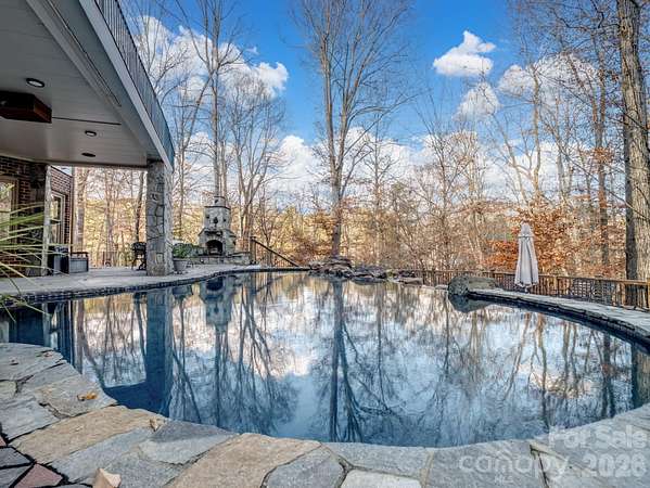 A rare opportunity awaits to own this gated 26-acre estate, seven springs on Lake Norman, complete with a private boat dock. The property showcases exceptional features, including a 2-acre spring-fed pond, a spacious 1,678 sq. ft. detached garage/workshop adaptable for multiple uses, former horse stalls, and a charming potting shed or she-shed. Ideally situated just outside the Long Island Airport strip, this remarkable estate offers endless possibilities and areas to explore. Additional amenities include state-of-the-art surround sound, a whole-home generator, an electric vehicle charging station in the garage, fruit trees, a full home theater in the basement with a 3D projector, and solid mahogany doors throughout. The outdoor living area is truly extraordinary, featuring a resort-style saltwater pool with waterfall and spa, a built-in grill, an outdoor fireplace, and a projector with screen. Multiple tiers of outdoor entertaining spaces create an unmatched setting for gatherings and relaxation. Inside, the great room is highlighted by an exquisite mirror imported from England, adding a sophisticated and timeless touch. The home boasts multiple fireplaces, rich Brazilian hardwood floors, dual grand staircases, and elegant marble flooring. The gourmet chef's kitchen features double ovens, a gas cooktop, and sweeping views of the property from nearly every room. This exceptional estate is truly one-of-a-kind-an unparalleled offering that must be experienced in person to be fully appreciated.