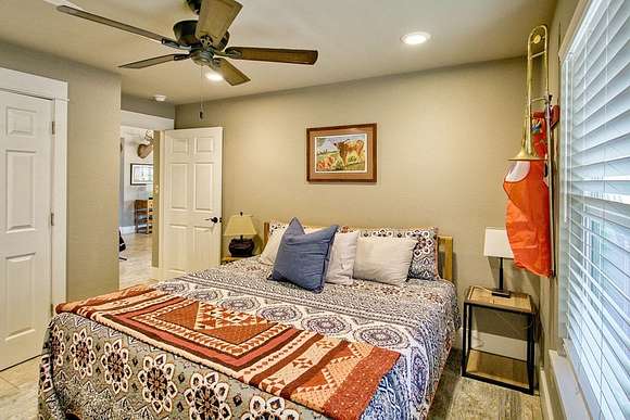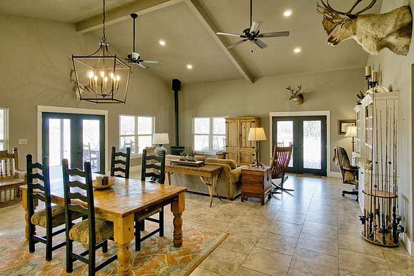 BORROW-SUM RANCH: Located north of Mason just off paved Ranch Road 1222 between Katemcy and Fredonia. County road access, scenic and easy to traverse hill country ranch. Soft rolling terrain timbered in post oak, live oak, blackjack oak, mesquite and native brush. Wet weather Tiger Creek features a heavy concentration of trees along west side of ranch. Year round pond provides water for wildlife, game and livestock. Strong, dependable water well (last tested 45 GPM) supplements pond and supplies a 2/2, 1500 sq. ft. residence/weekend home with vaulted ceiling and wrap around porch on two sides. Two storage sheds, wood worker's shop with air conditioning, Air Stream camper with potential for guest quarters, small livestock shed and pens provide additional use facilities. All deer stands and feeders would go with sale. Low perimeter fencing in above average condition. Ranch acreage is Ag exempt and all minerals to convey.