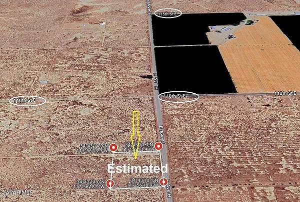 Est $274/moEast payments any credit ok Great serenity of desert life away from it all, and yet located on paved road with power available, some homes nearby. All flat land ideal for camping or a cabin in the desert for star gazing around a campfire. You can build your dream ranch home since power is available. bring the horses, cows, goats or any other animals. This will be perfect Bring your ATV's your camper, an unwind on this weekend getaway. Great views of San Gabriel mountains