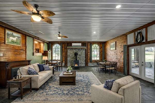 From breathtaking views atop rolling hills of a scenic 20-acre farm, to the 3100+ SF "old house made new" that brims with character, this simply exquisite property exudes everything there is to love about luxury country living. Incredible location in the heart of Lincoln County off of Highway 127 near the Casey County line (Hustonville/Liberty, KY). Meticulously-maintained, timeless and charming, the 3100+ SF farmhouse with expansive wrap-around porches is original to the early 1900s, yet has been stunningly-renovated with the utmost quality modern luxury finishes. From original hardwood and stamped concrete floors, unpainted original custom woodwork / mouldings, to expansive rooms and tall ceilings, it's a showplace. A majestic antique wood-burning cook stove is a talking piece of the kitchen, as is the huge walk-in pantry with solid wood shelving and island. And an ultra-lavish pairing of a wood-burning stove and a gas fireplace in the great room create a warm, cozy, never-want-to-leave-this-place kind of ambiance in cold weather. Out back, you'll find an adorable guest cottage with a full kitchen and full bath offers income potential, or a fabulous place for guests to enjoy; PLUS, a 2-car garage and 3-car carport, large metal barn with run-in shed, hay shed, tobacco barn with horse stalls, ample fencing, gorgeous ornamental landscaping and a lovely winding driveway. With the house quietly hidden from the road in the trees, gentle hills and open pastures that can be tailored to fit your vision of farming, recreation, or equestrian pursuit, this hard-to-find property in a prime location is ideal for what we all need -- peaceful living.