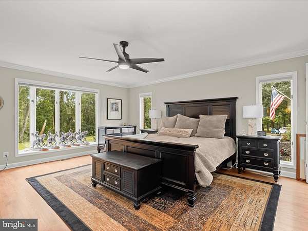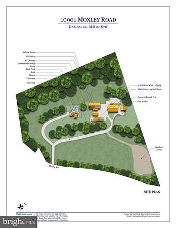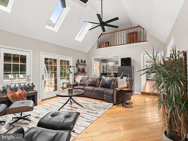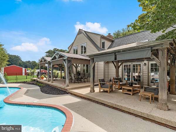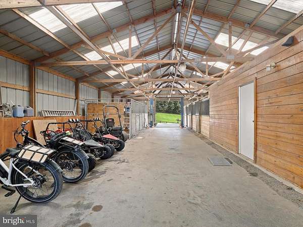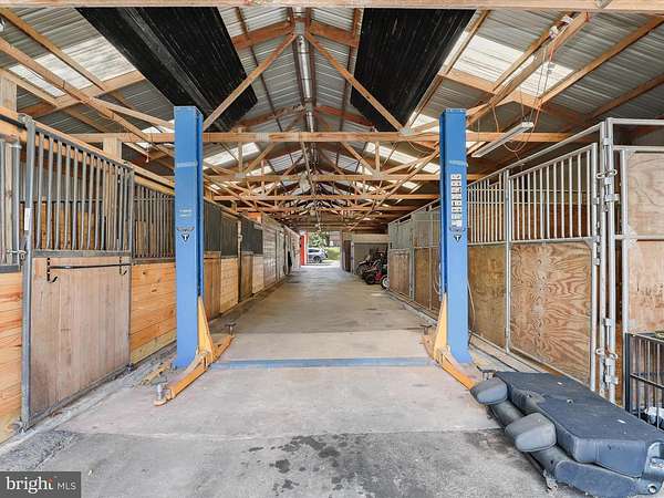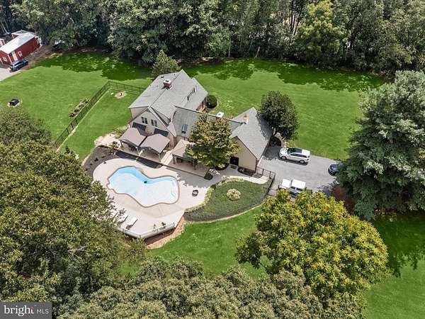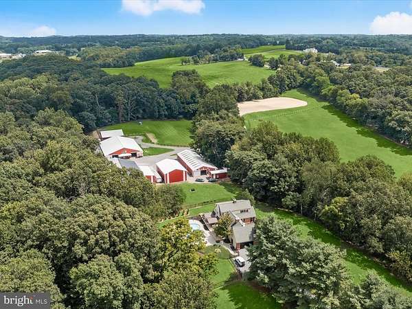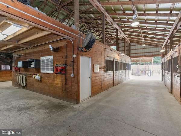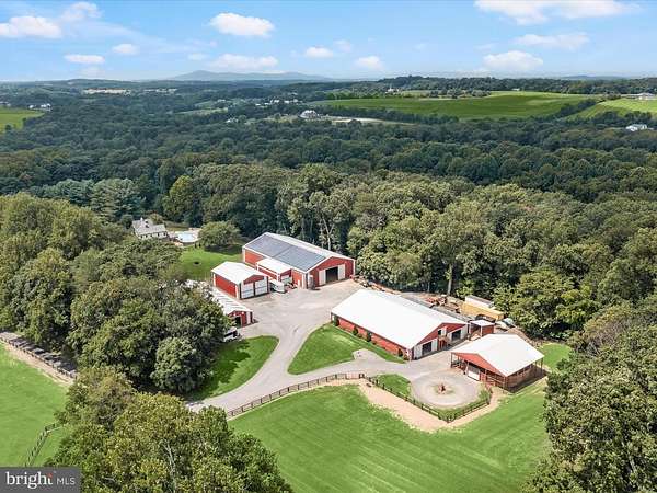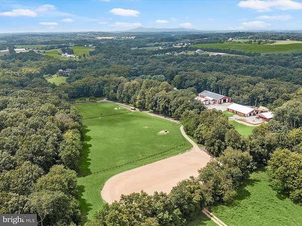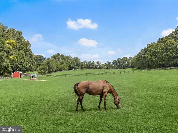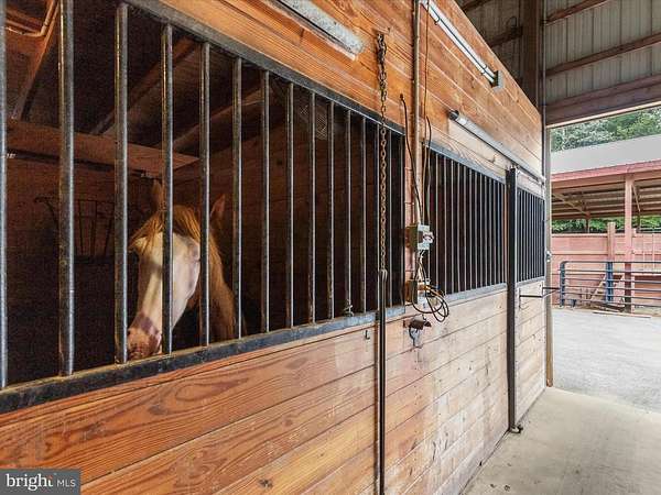 Set on 25 picturesque acres with a meandering creek, this world-class equestrian estate offers an unparalleled blend of professional horse facilities and refined country living-all within an easy drive of Washington D.C., Baltimore, and Northern Virginia. Designed with precision, care, and comfort in mind, the property is turnkey for the serious equestrian, trainer, or discerning private owner. At the heart of the farm are two exceptional barns, totaling 45 stalls, thoughtfully designed for safety, convenience, and efficiency. The main barn boasts 29 matted stalls across two wide 12-foot aisles, each equipped with its own fan, light, and timed outlet. Amenities include a climate-controlled lounge, two spacious tack rooms, a wash stall, an insulated laundry room, a utility room, and a massive loft with guest accommodations. Dedicated farrier lighting and ample tractor clearance make daily operations effortless. Just steps away are an indoor arena, a large shavings shed, an additional 7 stalls, and a hay storage container that keeps dust to a minimum. The second barn offers 9 matted stalls, a charming guest room, a full bath, and a two-bedroom suite ideal for visiting riders or staff. A vehicle lift in the barn provides space for on-site equipment maintenance. For the rider, the property features a large 60x120' indoor arena with sand footing and lighting, powered by a leased solar panel array with five inverters in the attached workshop. Outdoor training spaces include a 175' x 275' arena with new footing, a 48-foot covered round pen, and a 4-horse ProWalk hot walker. Pastures are immaculately maintained, enclosed by safe wood fencing, and laid out for ease of rotation and turnout. Additional accommodations include a caretaker's cottage and barn apartment, both updated for comfort and practicality. The four-bedroom main residence blends casual elegance with warmth, featuring hardwood floors, two gas fireplaces, a great room with brick-surround fireplace, cathedral ceilings, and skylights, a formal dining room with built-ins, crown molding, and designer lighting, and a main-level primary suite with the flexibility to expand. The updated kitchen with island and stainless steel appliances, granite counters, opens to light-filled living spaces, and the unfinished basement with rough-in offers room to grow. The upper level provides three spacious bedrooms, one with an en-suite bath with a soaking jetted tub, a walk-in shower, and a walk-in closet. Outdoor living is elevated by a newly remodeled heated inground pool with fountains, new tile and plaster, a sun deck, and a covered patio surrounded by lush perennial gardens. Additional amenities include a Two-car attached garage with EV charger, an RV garage with 16-foot ceilings, 14-foot doors, and 100-amp service, designed for Class A RVs, large living quarter horse trailers, or future conversion to a gym, basketball court, breeding facility, or stallion station. Every detail of this estate, from the safe fencing to the solar power, from the manicured arenas to the luxurious living quarters, has been crafted for the ease of care and enjoyment of horse and rider alike. With proximity to top equine veterinary hospitals and premier showgrounds, this is a rare opportunity to own one of Montgomery County's finest equestrian properties. Shown by private appointment only.
