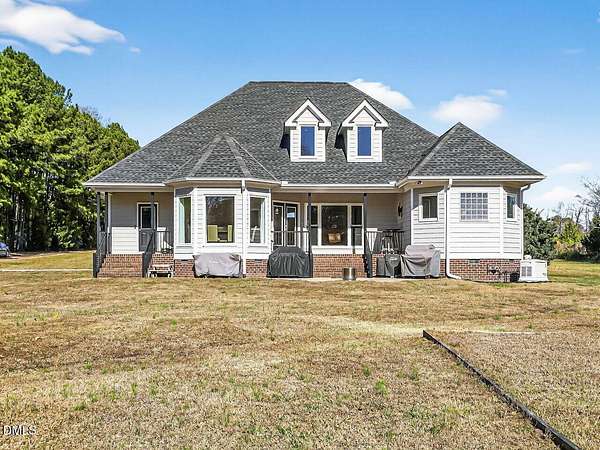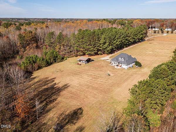 Country living on just over 10 acres with big-ticket updates already done. This well-kept 2003 custom home in Nash County with no HOA, private well and septic, a pond at the back of the property, and room to actually use your land. Since 2020, the sellers have invested heavily in systems and structure so the next owner can move in with confidence. Updates include a new roof (2020), new well pump and casing (2020), HVAC unit replacement (2021), whole-house Generac generator (2025), new windows throughout the home (2025), and a professionally encapsulated crawl space with dehumidifier (improved in 2020 and replaced in 2025). Inside, the two-story living room with skylights and a wall of windows brings in natural light and views of the back acreage. The open layout connects the living room, dining area, and kitchen with bar seating, hardwood floors, and excellent cabinet storage. A main-floor primary suite offers a tray ceiling, spacious bath with soaking tub and separate shower, and easy access to the main living areas. Additional main-floor bedrooms, a full hall bath, dedicated laundry room, and a large bonus room over the garage provide flexible space for guests, hobbies, office, or media. Outside is where this property really stands out. The home sits well back from the road with a long front yard, side-entry garage, and wide driveway. Behind the house, a covered rear porch and paver patio overlook open fields that transition to woods and a serene pond along the back edge of the property. A large pole barn offers covered storage for tractors, boats, trailers, or equipment. Whether you're dreaming of a small farm, space for horses or other animals (per county guidelines), gardening, or simply a Nash County home with acreage and privacy, 10907 NC 97 is a rare opportunity for land, updates, and quiet country setting all in one.