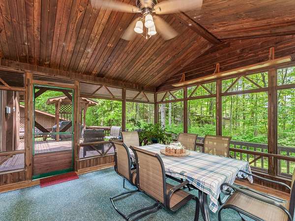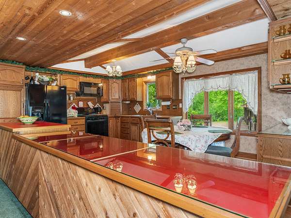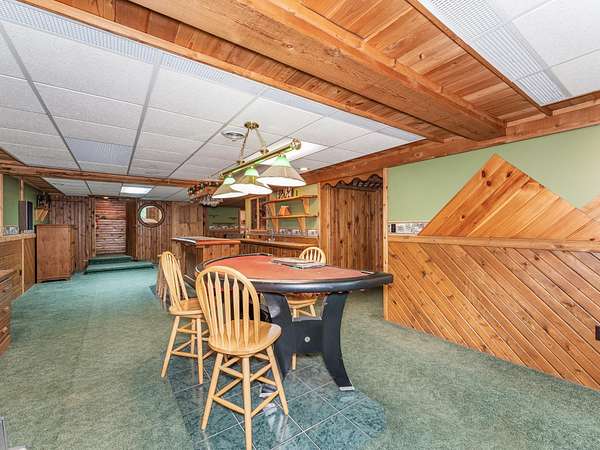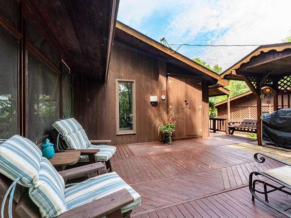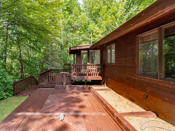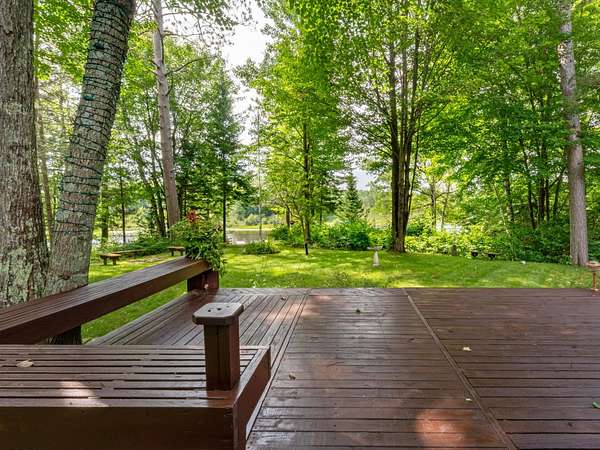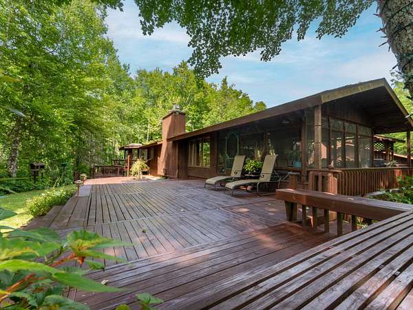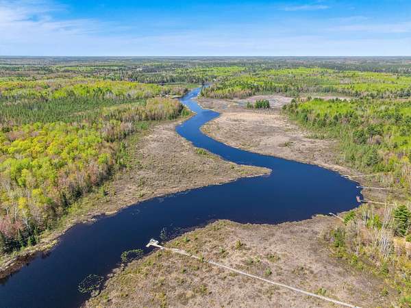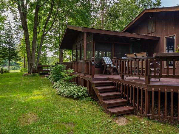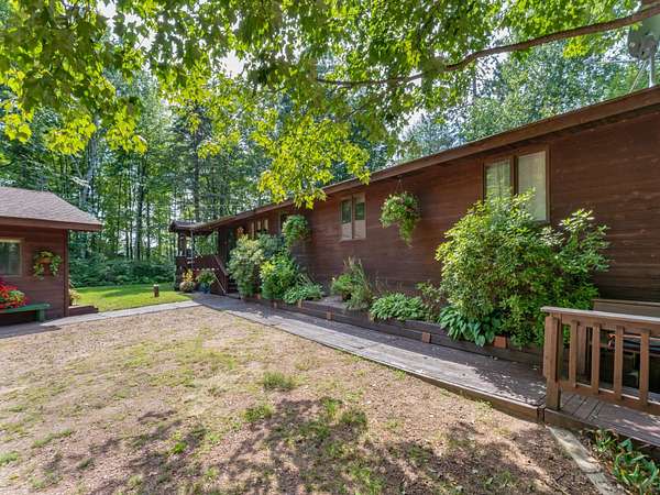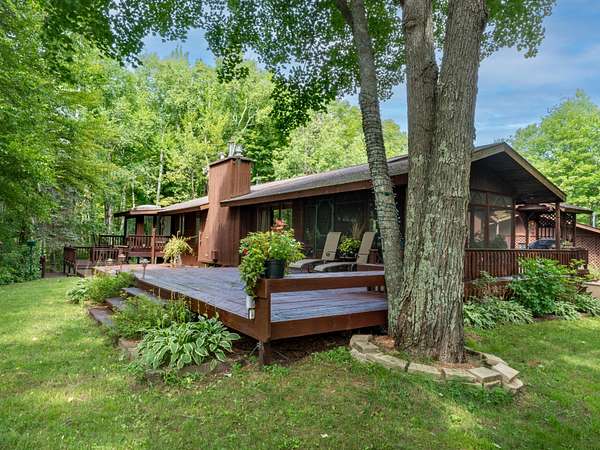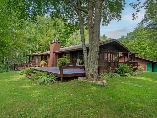 Experience Northwoods Serenity in this expansive 3,500 sq ft cedar ranch set on 2.1 wooded acres. The property features 175' sand shoreline on navigable Amber Creek, right near the mouth of 785-Ac full-rec Amber Lake. The home's interior features a spacious great room w/tongue & groove cedar, fieldstone fireplace, & built-in shelving. The kitchen offers cathedral ceilings, ample cabinetry w/island & dining area. The finished LL provides a rec rm w/wet bar & multiple rooms/spaces for storage/hobbies. Enjoy panoramic western sunset views from the expansive multi-level decking, screen porch, & spacious level yard w/fire pit. A 3,000 sf garage includes a heated workshop w/window A/C, heated gym room, & space for 3+ vehicles & additional storage. Amber Lake offers excellent boating & fishing for musky, bass, pike, panfish, & walleye. Additional recreational opportunities are abundant with the nearby snowmobile trails, popular Disc Golf Course & Chequamegon-Nicolet National Forest.