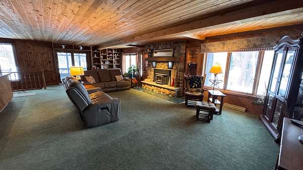 For the buyer(s) who wants or needs a Secluded, very scenic, serene atmosphere, this lake house will check a lot of boxes. This Cedar sided Raised Ranch has 4 bed- 3 Bath. On 2.1 wooded acres with 175' of frontage on Amber Creek, which is at the Mouth of Amber Lake, formerly Squaw Lake. It's a full rec -736-acre lake. with average depths of 10' and the deepest being 21'. It is a renowned Class A Musky Lk. It provides consistent action for Walleye, Northern Pike, & Panfish. The homes interior offers a spacious great room w/T&G (roughcut)cedar, fieldstone fireplace, & built-in shelving. The Kitchen has flat-cathedral ceilings, ample cabinets w/island and dining area. Several bedrooms and a 2nd bath on 1st floor with the master being en-suite. The L.L. is completely finished and has a huge rec room w/ wet bar, Laundry, Office space, Bedrooms, a few more to decide their usage. The 2600+sq. ft. detached garage, has multiple use- split rooms, both have heat & 1 has Ac. More Info in docs.