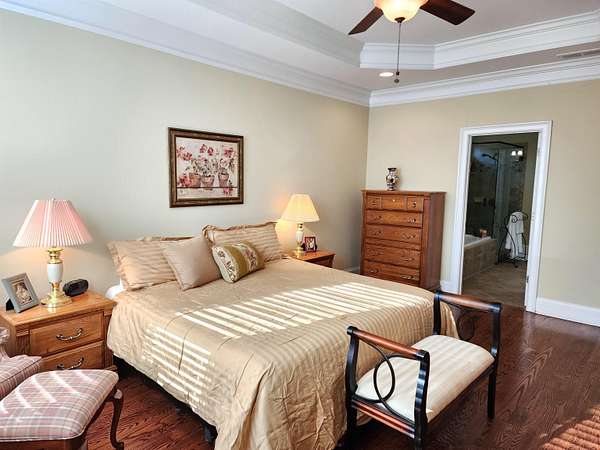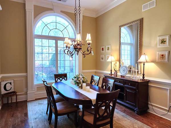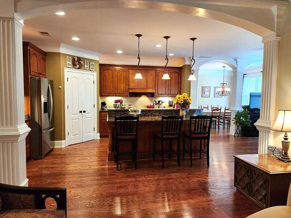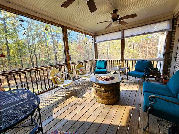 Lovely quality, All-Brick home in Reynolds, Cherokee Point. Over 4000 sq ft, four Bedrooms, three and one half Baths, built in 2008 on 2.41 acres. The main level has rare, real, hardwood floors throughout. The living room is open and flows nicely from the entry to the elegant dining room and living room with high, vaulted ceilings. The amazing kitchen has a large island and breakfast bar, tons of cabinets, pantry, coffee nook and granite countertop space for the avid cook. The breakfast room and keeping room, lead to the pretty, screened porch overlooking the private back yard, the perfect spot for morning coffee or evening wine. The primary bedroom, located on main level has double sinks, separate tub, shower, tiled floors, granite counters and walk-in closet. A half bath is located off the breakfast room. The laundry room with has an area to fold and hang clothes. The large terrace level has great space for everyone, including living, recreation room, wet bar, office space, a second full kitchen, three bedrooms and two full baths. There is a covered patio just off the back, perfect for grilling and relaxing. The three car garage is a side entry and the driveway has additional space for parking for guests. Home includes whole house water softener. Washer, dryer and refrigerator remain. There is a boat ramp a short distance from home and the property also includes a deeded storage space perfect for your boat and toys, (owners have kept a 22 ft boat in space), even room for trailer storage outside. This is a beautiful, well maintained home in a serine community perfectly located between the Publix shopping area and I-20 access.