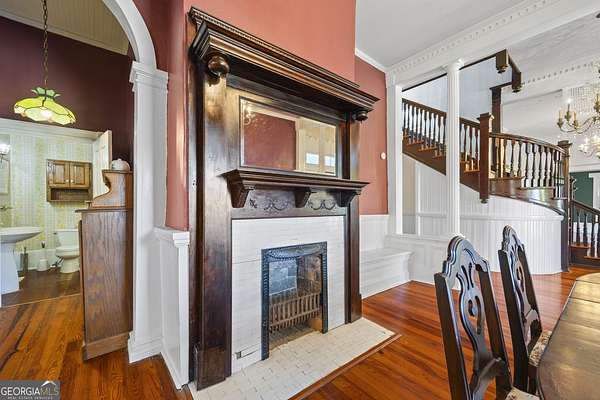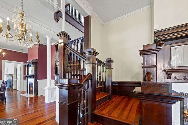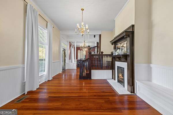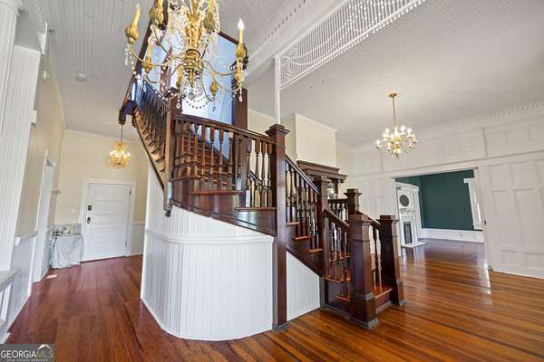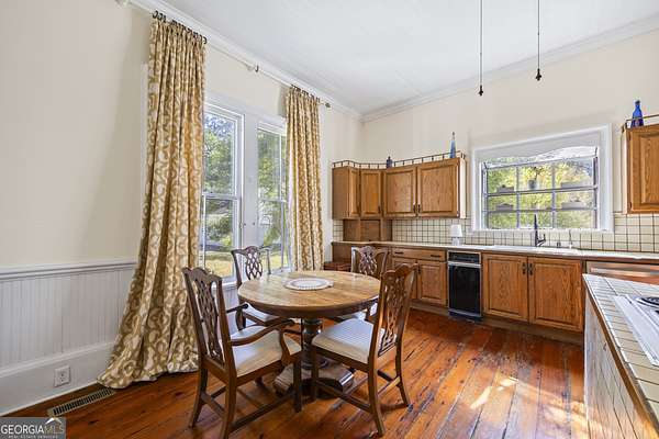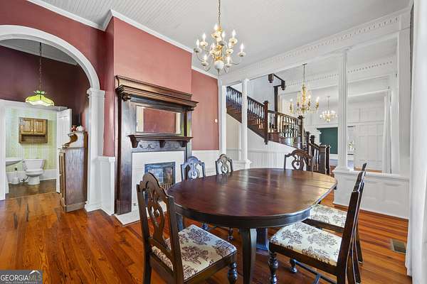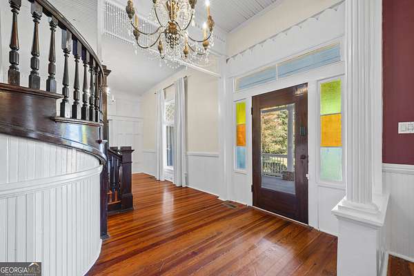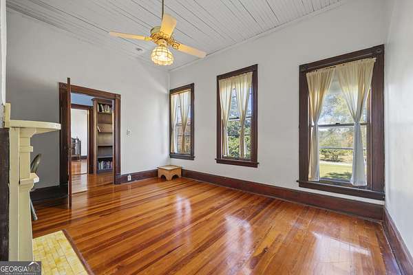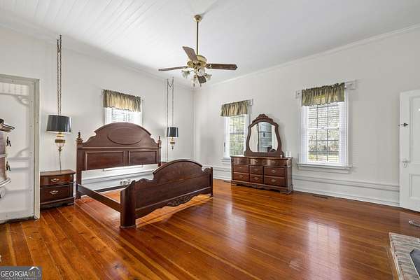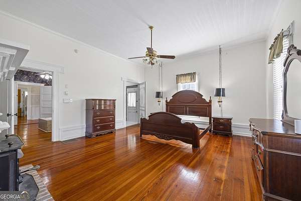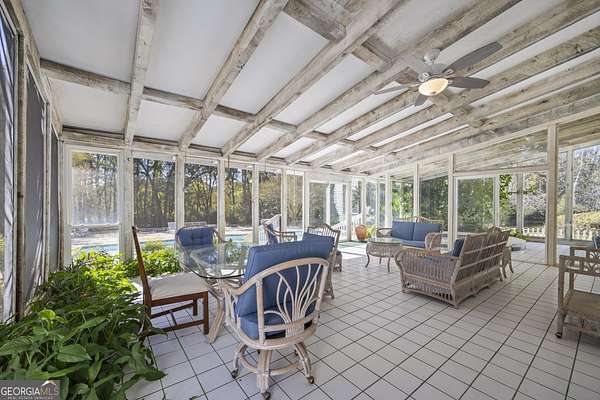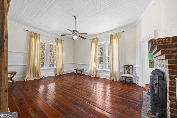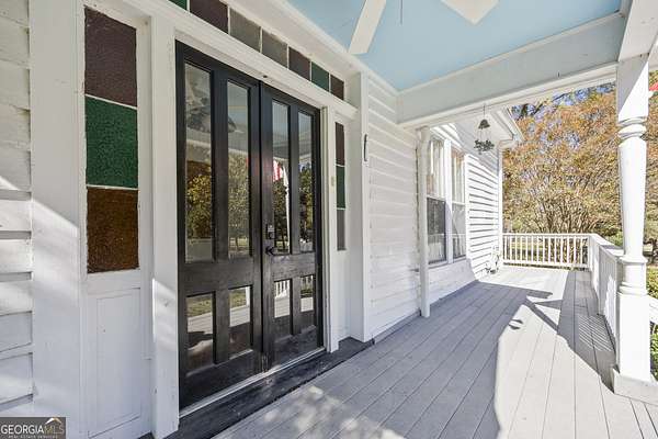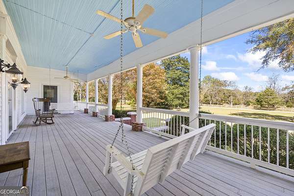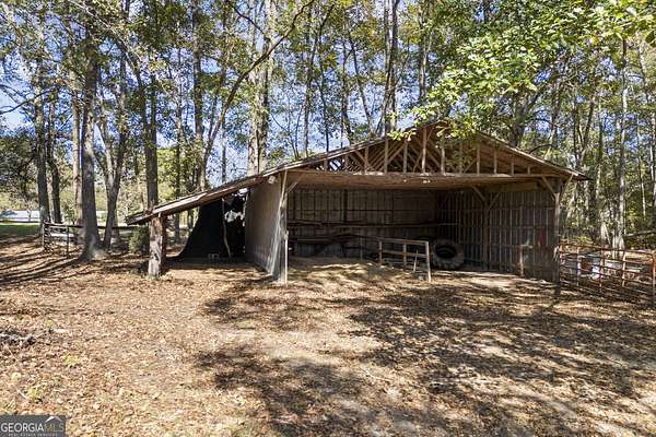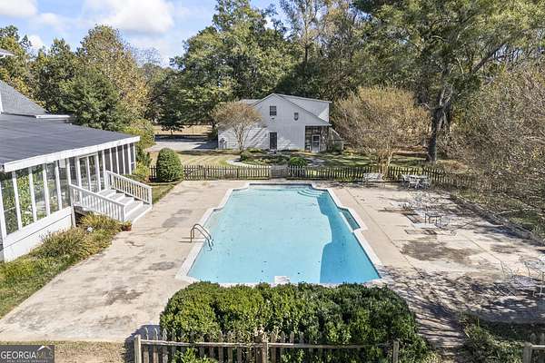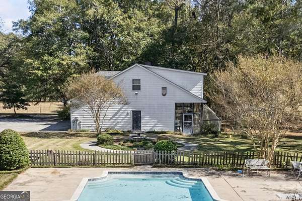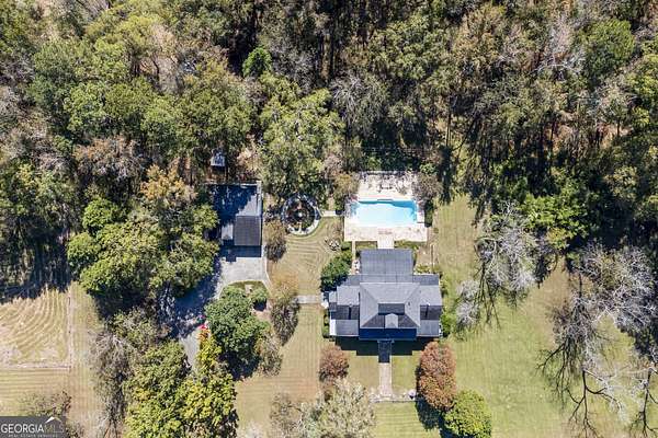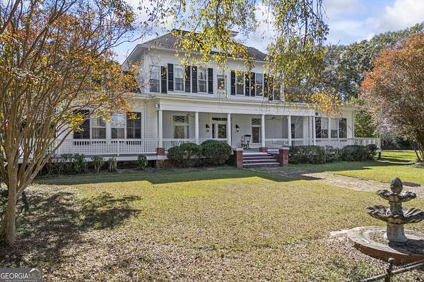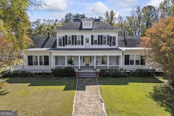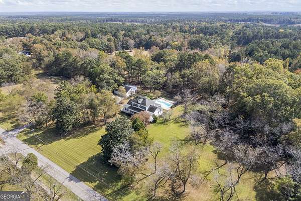 Come enjoy peaceful country living on this 20-acre property in the Woodville/Union Point area, ideally located between Athens and Lake Oconee. This remarkable property carries a rich history dating back to the Civil War era. The estate features a pond, creek, fenced pastures, a historic main home, and a detached garage with apartment, offering privacy and versatility, plus it's a great area for multi-generational living. This stunning home was built in the mid-1800s and meticulously restored in the 1980s, preserving its heritage and many original details throughout. This classic home includes 4 bedrooms, 2 full baths, and one half bath with timeless architectural details throughout. Highlights include a covered front porch with two swings, grand foyer with a stunning staircase, stained glass, original heart pine floors, 11-foot ceilings, and multiple fireplaces. Living spaces include a parlor, formal dining room, living room, great room, and a large laundry/office. The primary suite is on the main level, with three additional bedrooms and a full bath upstairs. The kitchen offers an island, double ovens, and stainless-steel appliances. Conveniently located off the kitchen is the amazing sunroom which features a sauna and a round gunite hot tub overlooking the gunite saltwater pool. A landscaped walkway leads to the detached four-car garage with greenhouse, workshop, full bath, and a three-bedroom apartment with full kitchen above. There is also a storage shed and barn on the property. The setting is exceptionally scenic and serene! It includes a mix of open pasture and woods, with approximately 15 fenced acres divided into three pasture areas, plus a treehouse, garden space, and mature fruit trees and pecan groves on both sides of the home. This property is ideal for horses, entertaining, or a private retreat. For convenient outdoor adventures the Firefly Trail is located just down the street, and Offroad Adventures at Durhamtown is about 7 miles away. Don't let this rare and remarkable opportunity slip away.