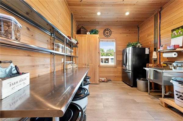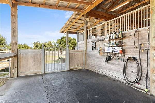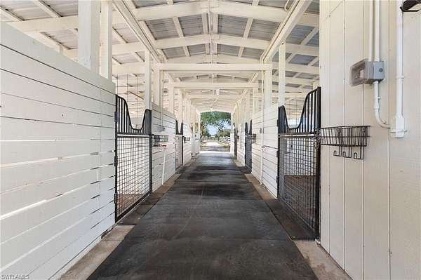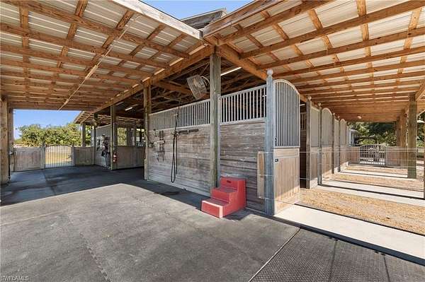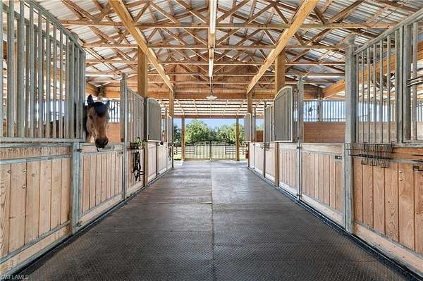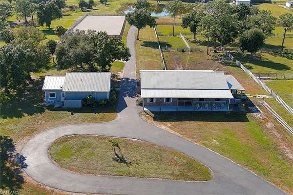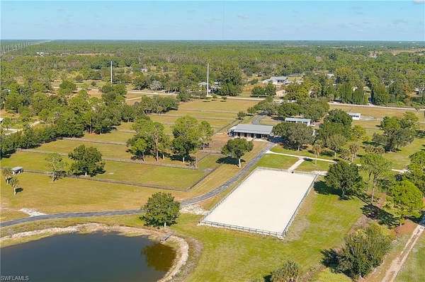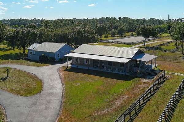 YOU HAVE FOUND YOUR FLORIDA HORSE PROPERTY! This is a 20.22-acre TURNKEY equestrian dream, offering you the best in location, privacy, comfort and efficiency. Show up, unpack, and ride! This farm is fully Fenced and Cross Fenced w/ 4 board fencing, lag bolts and individual gates, and features multiple newly renovated buildings, including an immaculate 5+ stall Main Barn, a 5+ stall Secondary Barn, a 2 bed/2 bath modern and updated Farmhouse, a Hay Barn with A/C, a 66x198 Multi-use Riding Arena, a 10' deep stocked fishing Pond, a 4 Bay Garage w/ Car Lift and A/C and an attached Efficiency Apartment with a kitchenette and full bath, and an 1,800sf Storage Building. Trees abound to offer shade in each green pasture for a total of 11 Enormous Turnout Pastures and 2 smaller for rehab situations. Over $250K of upgrades since 2023, state-of-the-art reverse osmosis water system, 24KW Generex Gen. 500 gal propane tank. Possibilities to further improve this property, such as building a larger home or adding on to the farmhouse, adding a swimming pool, a sports court, and round-pen. MOVE IN READY! Fully permitted. Survey available. Located close to Babcock Ranch, shopping, airports, feed stores, veterinarians, and I-75. Lee County horse parks, trails and boating nearby to live your best life here.