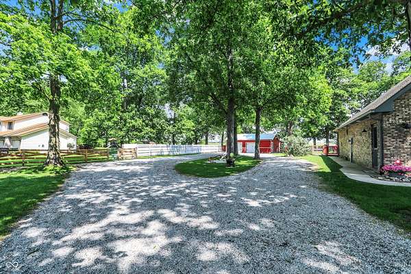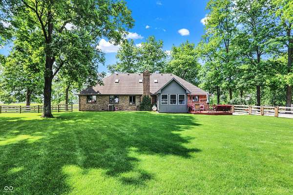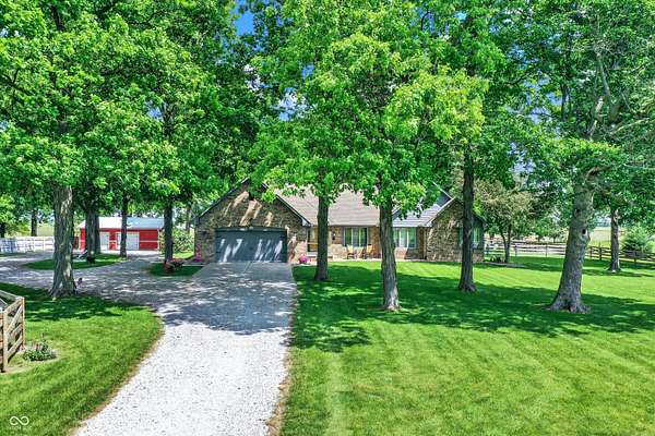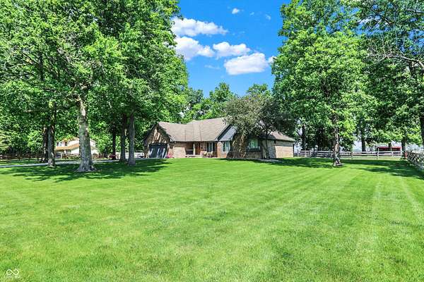 A RARE FIND!! INCREDIBLE CUSTOM BRICK HOME NESTLED ON PARK-LIKE 3.55 ACRES, GORGEOUS MATURE SHADE TREES, 4+ CAR GARAGE (INCL BOTH 2-CAR ATTACHED & 2.5 CAR DETACHED GARAGES), MINI BARN & RUN-IN SHED w/WATER & ELECTRIC, BEAUTIFUL SURROUNDING SPLIT RAIL HORSE FENCING + SEPARATE FENCED AREA FOR RV, TRAILERS, OR BOAT (COMPLETE W/30amp HOOK-UP). You'll immediately feel at home at this picturesque retreat where serenity & nature abound, & relaxation beckons w/plenty of space for peaceful living, pastimes & hobbies! Beautiful CUSTOM BRICK HOME features spacious SUNROOM & DECK for family gatherings & a FANTASTIC floor plan! Inviting foyer opens to front Living Rm/Office, & enjoy the SPACIOUS Great Rm & cozy gas FP w/gorgeous wood mantle & trim & inviting LARGE country Kitchen w/NEWER APPLIANCES, & Dining area. MAIN-FLOOR PRIMARY BR features beautiful custom octagonal-raised ceiling w/gorgeous trim & ceiling fan/light, ensuite bath w/dual sinks, & separate shower w/stunning & 2 walk-in closets. Two additional MAIN-FLOOR bedrooms, each w/ceiling fan/lights, are freshly painted w/newer accent walls & beautiful wood trim work + 2nd full bath has new walk-in shower & updated painting. UPSTAIRS, an ENORMOUS BONUS ROOM/LOFT w/walk-in closet is ideal DEN/OFFICE, HOBBY Rm/PLAY Rm, or REC/EXERCISE Rm or LARGE 4TH BR PLUS ADDITIONAL HUGE WALK-IN 20x14 wood-floored attic space for storage! MANY UPDATES /IMPROVEMENTS include newer countertops in Laundry Rm, NEWER HVAC system, appliances, wood laminate flooring in Kitchen, updated light fixtures, camera, & MUCH MORE! A DREAM 3.5+ ACRE SETTING WITH GORGEOUS MATURE SHADE TREES & SCENIC VIEWS . WELCOME HOME!
