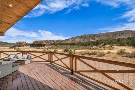 Just a 25-minute drive from Zion. This property features a spacious 5-bedroom, 3.5-bathroom main house, and a separate 2-bedroom, 1-bathroom apartment above the detached garage, both independently rentable for maximum revenue potential. Prepare to be captivated by the stunning surroundings, views of the pink coral cliffs and hay fields in the valley below. Step inside to discover a haven of comfort and style, starting with the expansive great room featuring vaulted ceilings and gas fireplace. The open kitchen, with a large granite island is perfect for hosting family dinners or gatherings of friends. Retreat to the luxurious primary on the main level, boasting a spa-like bath and private access to the outdoors. The basement game room offers additional space to relax, with two bedrooms and a full bath. Upstairs, a loft area features two more bedrooms and another full bath, ensuring plenty of room for everyone to spread out and enjoy. Fully furnished and turnkey ready, this property offers a seamless transition into vacation rental ownership or for those seeking a permanent residence. Buyer to verify all.