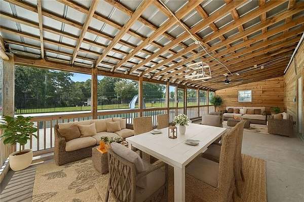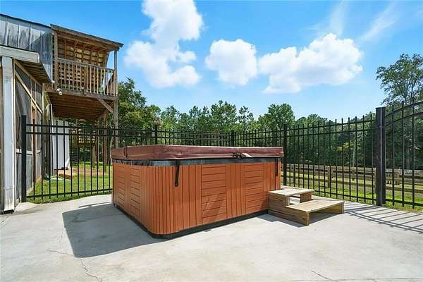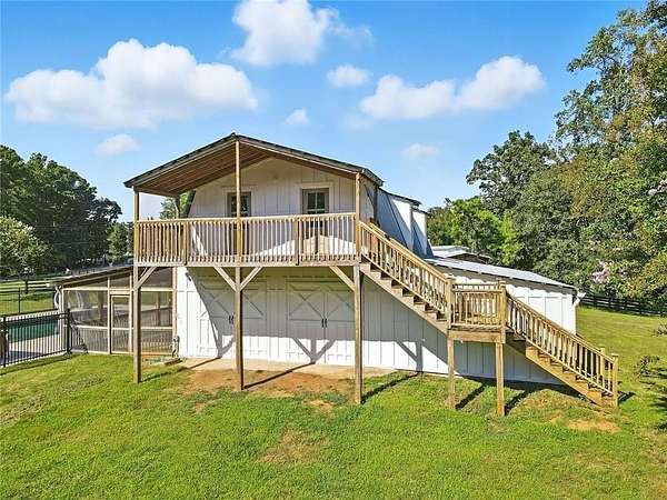 Listed at appraisal value and set on five cleared acres in Canton, this estate pairs a saltwater pool and spa with stables, a guest house, and room to live wide open. Recent improvements include a replaced roof, new windows, fresh interior and exterior paint, a new front door, and nearly two acres of overgrowth cleared to expand the usable land. The main level centers around sun-filled living spaces with wide-plank wood floors and two stone fireplaces. The kitchen flows easily into the breakfast nook and dining room, creating an open feel for everyday living and hosting. A private in-law suite sits on this level with a renovated bath, offering updated comfort for extended stays, along with additional full and half baths for convenience. Upstairs, the primary suite serves as a true retreat with a walk-in closet and spa-style bath. Additional bedrooms provide flexibility for guests, hobbies, or a dedicated home office. A bedroom addition and expanded two-car garage enhance both function and storage. The finished basement extends the home with a full bath, fireplace-lit living area, wet bar, office, and flexible bonus space that works well for recreation or long-term guests. Outdoors, the property transforms into a private resort. The saltwater pool with spa and slide anchors the outdoor living areas, while a renovated barn wing sits just steps away. Above the pool house, a full guest suite includes a bedroom, bath, kitchen, and dining area. A back porch with a new roof overlooks the fenced acreage, creating a covered patio space to recharge and entertain with ease.