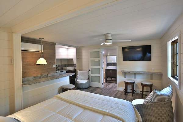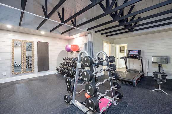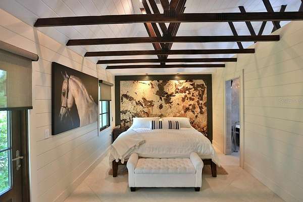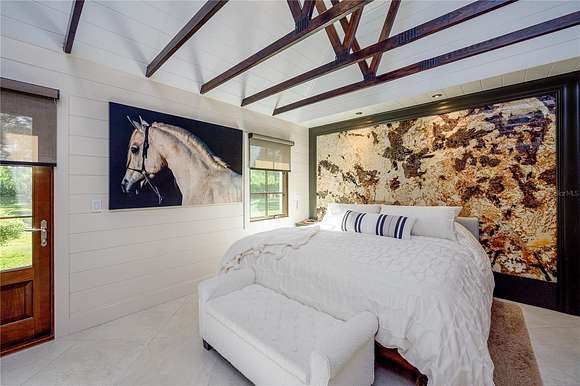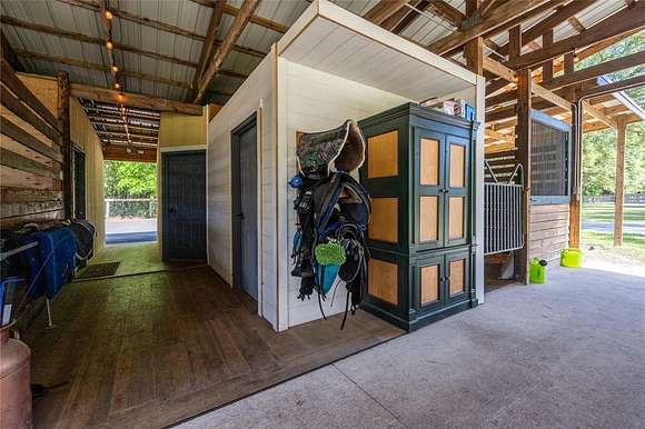 Direct access to the Greenways, you'll enjoy paved bike paths, mountain biking trails, and miles of picturesque horse-riding trails right at your doorstep. This stunning property sits on an expansive 6.89+/--acres. It is a unique opportunity for horse enthusiasts and outdoor lovers alike, featuring a main residence, a guest residence, and a five-stall horse barn with an apartment. This impressive two-story residence boasts 2 bedrooms and 2.5 bathrooms, along with a spacious 2-car garage. The highlights include a brand-new Presidential Triple Laminate Shingle roof, elegant copper gutters, and a full-house Generac propane generator for peace of mind. Enjoy modern living with new stainless-steel appliances, custom solid wood cabinets, and beautiful granite countertops throughout. The luxurious owner's suite features a stunning back wall made of a single granite slab, and the entire home showcases heated tile floors, opting for tongue-and-groove walls instead of drywall. Cozy up by the Chicago brick gas fireplace or unwind on the expansive back paver deck. Additional features include a water softener, a dedicated laundry room, and a convenient garage door opener. Perfect for guests or Airbnb rental potential, this charming residence includes two bedrooms and three bathrooms, each with its own private entrance or the option to connect. The property features a full kitchen downstairs and a kitchenette upstairs, both adorned with granite finishes. Enjoy the benefits of new mini-split units, a full gym/workout room (which can be easily converted into a third bedroom), and a separate laundry room. Relax on either the front or rear covered porches. The well-appointed barn features five stalls, a feed room, a tack room, and two wash racks equipped with hot water. A cozy sitting area makes it a perfect gathering spot after a day of riding. Barn Apartment: This private one-bedroom, one-bathroom apartment features a kitchenette and a mini-split A/C unit, ideal for added privacy or accommodating guests. This fully fenced and cross-fenced property features five paddocks equipped with concrete waterers. An inviting asphalt driveway with concrete curbing leads to the custom solid aluminum gate. Enjoy evenings by the fire pit, appreciate the serene lighted fountain, and revel in the plentiful outdoor lighting that enhances this beautiful estate. Rare opportunity to own a remarkable property that truly has it all!