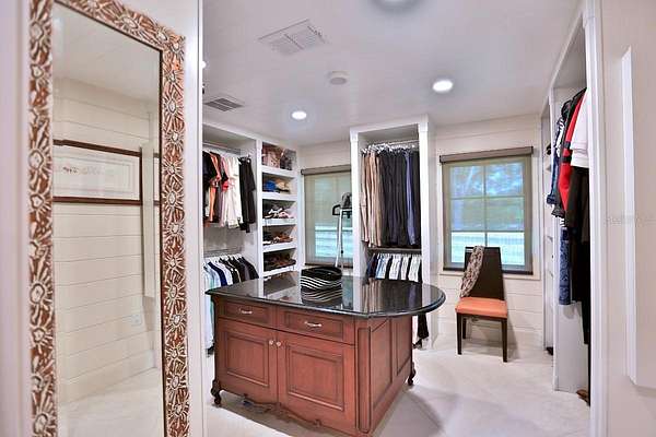 - Ceiling Fans(s), Crown Molding, Eat-In Kitchen, High Ceilings, Open Floorplan, Primary Bedroom Main Floor, Solid Wood Cabinets, Stone Counters, Vaulted Ceiling(s), Walk-In Closet(s), Window Treatments