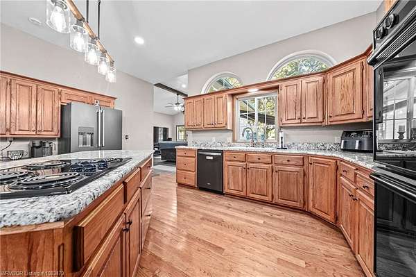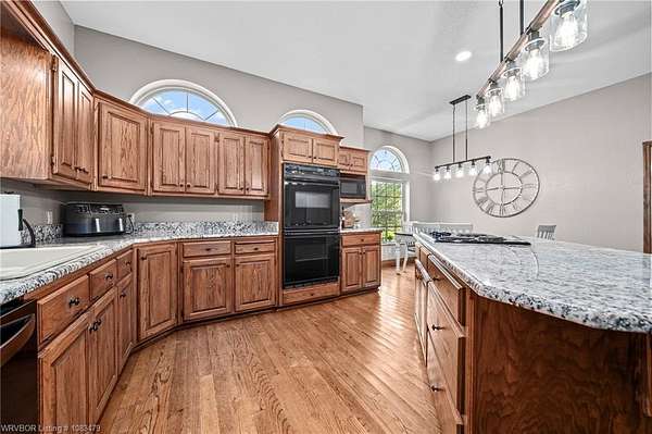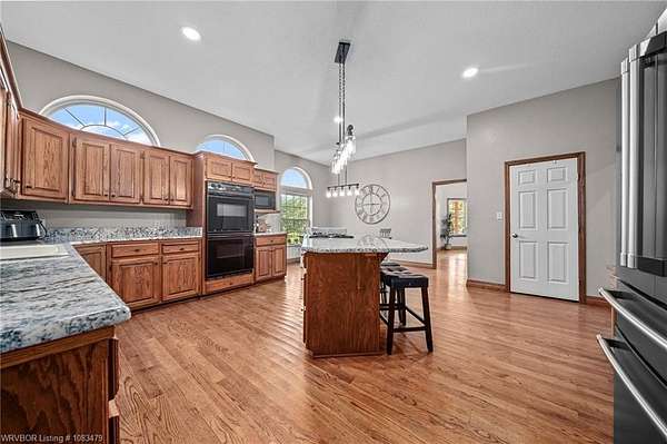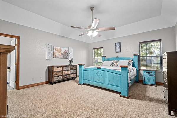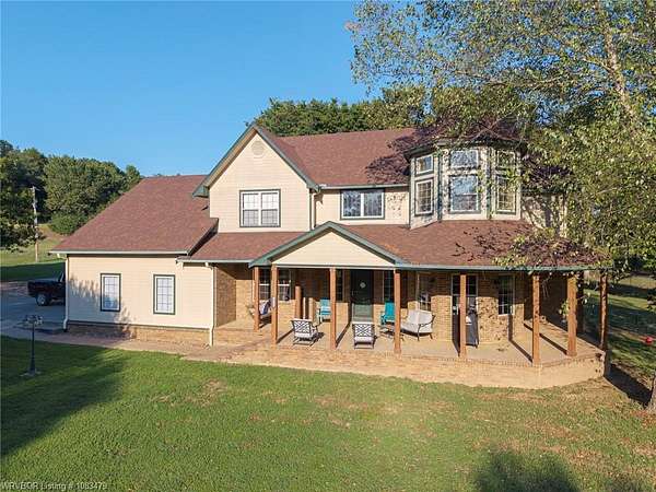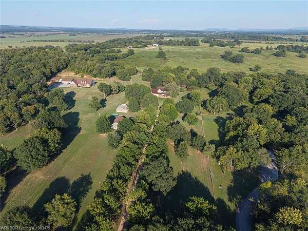 Welcome to your own private paradise! This home offers a perfect blend of luxury, comfort, and tranquility, on over 8 acres of sprawling land, directly across from the esteemed property owned by the Arkansas National Heritage Commission, and only a 25 min drive to Fort Smith. Nestled amidst the natural splendor of Arkansas, this property offers a rare opportunity to experience country living at its finest. Step inside to discover a spacious and meticulously crafted interior, designed with both style and functionality in mind. The living areas are bathed in natural light, creating a warm and inviting ambiance that beckons you to unwind and relax. One of the home's unique features is a hidden room concealed behind a bookcase, providing a sense of mystery and intrigue that's sure to delight both children and adults alike. The kitchen is a chef's dream, with double ovens, custom cabinetry, and island perfect for meal prep or casual dining. The elegant dining area provides the ideal setting for dinners and gatherings. The primary, where you'll find a private sanctuary complete with an ensuite bathroom and serene views. The four additional bedrooms offers space for guests, or even a home office or fitness studio. Whether you're enjoying a leisurely stroll, hosting a barbecue on the expansive patio, or soaking in the breathtaking views, you'll feel a sense of peace and serenity. This property also includes a 1280 square foot detached mother in law suite completely remodeled with 2 bedrooms and 1 full bath. A 20x30 barn with a loft area offers ample space for storage, hobbies, or livestock. Located directly across from the H.E. Flanagan Prairie Natural Area, you'll have easy access to recreational opportunities, including hiking, birdwatching, and exploring the rich history and culture of the region. Don't miss your chance to make this extraordinary property your own. Experience the epitome of Southern living today!