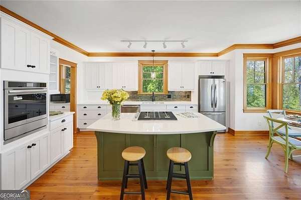 Est $8,667/moJust 20 minutes from downtown Jasper, this custom-built mountain estate offers 5 bedrooms and 5.5 bathrooms with recent updates throughout. The home features a remodeled basement, a renovated main-level kitchen with new appliances and countertops, and updated master and secondary bathrooms. A full in-law suite and terrace-level entertainment spaces, including a game room, exercise room, and workshop, add flexibility and function. Expansive porches and a four-season glass porch capture panoramic mountain views, including seasonal glimpses of Amicalola Lodge and Falls. With soaring log beams, built-in bookcases, and a drive-under garage for woodworking or storage, this home combines comfort, style, and mountain living just minutes from town.