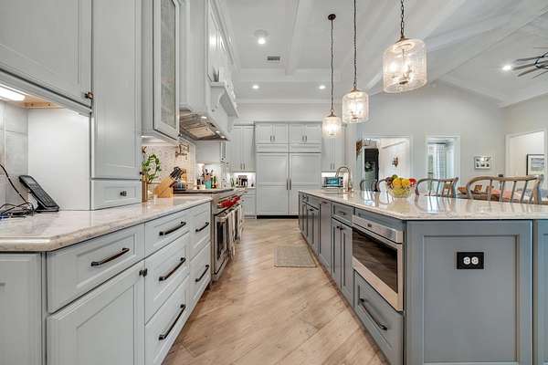 - Central Vacuum, Entrance Foyer, High Ceilings, Hot Tub Spa, Pantry, Split Bedrooms, Stall Shower, Tray Ceilings, Vaulted Ceilings, Walk In Closets, Wet Bar