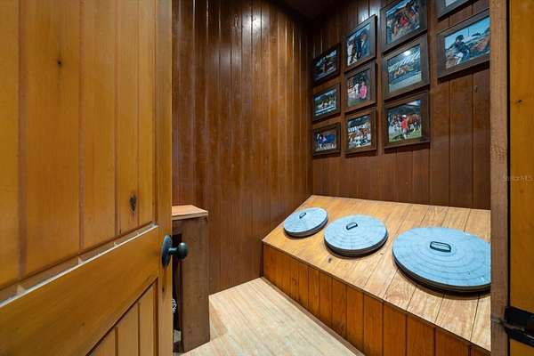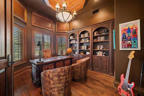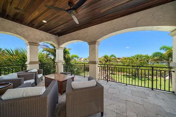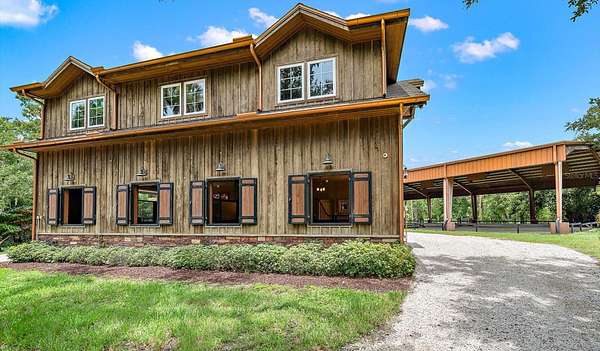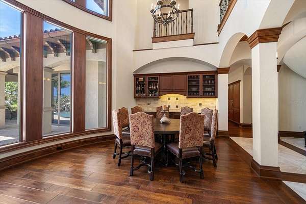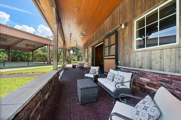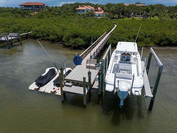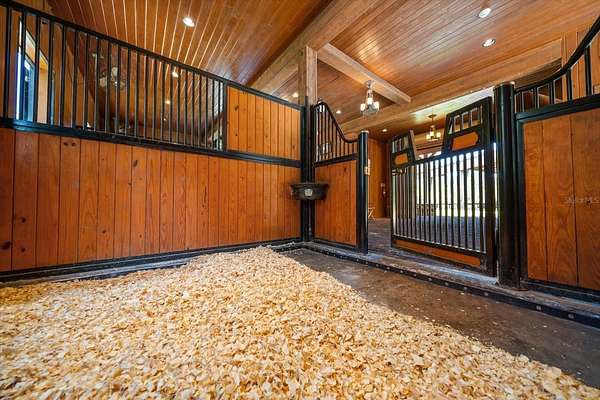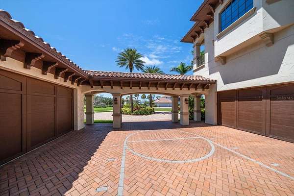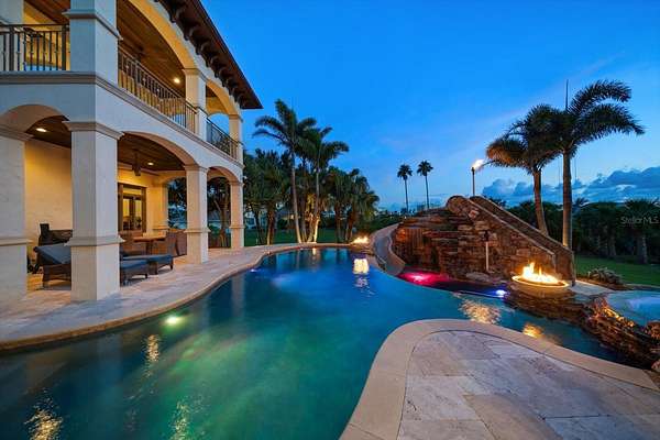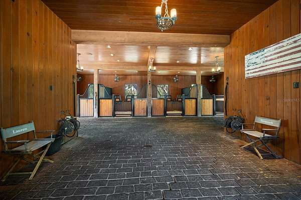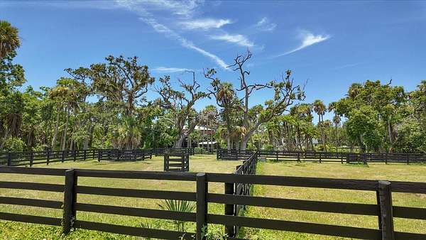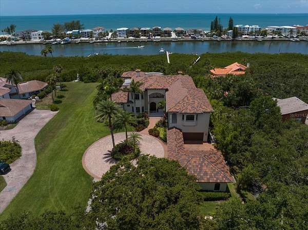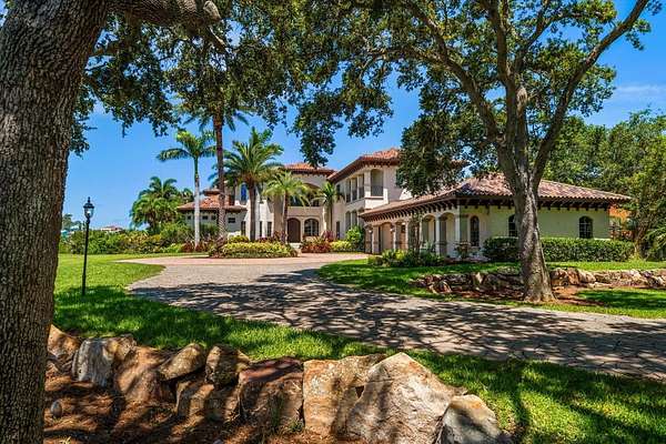 An estate where two elite worlds unite- WATERFRONT luxury & EQUESTRIAN prestige. Tucked away behind a canopy of majestic oaks, a winding Tennessee fieldstone driveway leads you to a Mediterranean-inspired masterpiece that redefines elegance and luxury. Crafted by renowned Brandon Construction, this private estate is a true tropical paradise, created for those with the most discerning taste. Custom double entry doors open to an awe-inspiring interior--where sophistication and thoughtful design meet. The private office offers quiet productivity, while the breathtaking living and dining room commands attention with soaring floor-to-ceiling windows that perfectly frame the resort-style pool and lush outdoor living areas. The chef's kitchen is the heart of the home, featuring granite countertops, a center island with prep sink, breakfast bar, pot filler, custom built-in Miele fridge & freezer, gas cooktop, and a walk-in pantry--all open to a warm and spacious family room with beamed coffered ceilings, a cozy fireplace, and sliders to the outdoor oasis. Every detail has been considered, from the pool bath, mudroom, and laundry room to the theater room with stage and stadium seating--ideal for movie nights or performances. The primary suite is a serene retreat, flooded with natural light and accented by rich wood beams, a jaw-dropping custom walk-in closet with center island, and a spa-like bath with jetted tub, double walk-in shower with triple heads, dual vanities, a dressing table, and a hidden passage to the home office. Additional bedrooms and bathrooms are designed to pamper family and guests alike. Step outside and you're transported to your own luxury resort--complete with a two-level heated pool and spa, outdoor kitchen, fireplace, and multiple entertaining areas. For boating enthusiasts, a TREX dock with a 10,000 lb lift offers direct access to the Intracoastal, while west-facing views provide spectacular sunsets that melt into the Gulf. But the crown jewel of this estate may be its custom-built barn--featuring rubber paver flooring, stalls with custom cushion mats, a tack room with custom saddle racks, feed room, covered and lit riding arena for nighttime rides, and a loft with full kitchen and bath, perfect for an on-site trainer or in-law suite. Spring-fed streams weave through the grounds, adding a touch of magic to this must-see property. Overlooking the Narrows and nestled in nature yet minutes from shopping, dining, and the beach--this is more than a home; it's a once-in-a-lifetime opportunity to live your dream.