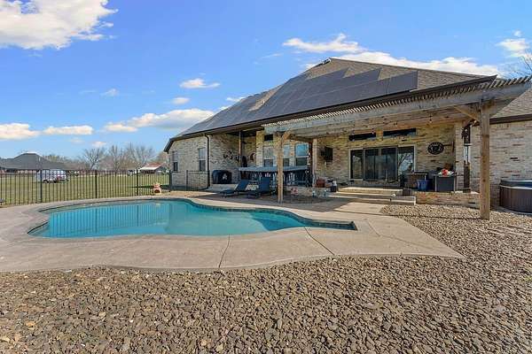 Welcome to 10931 Blue Sky Rd! This spacious and custom brick home offers the perfect blend of comfort, style, and outdoor living just in time for summer. Beautifully designed with inviting living spaces and a functional open style layout, this home is ideal for both everyday living and entertaining. The kitchen area is amazing with a large island, granite countertops, double oven and beautiful cabinetry! Step outside and get ready to make the most of warm Arkansas evenings in your private saltwater pool! The backyard entertainment area and patio create the ultimate setting for summer cookouts, pool parties, or simply relaxing under the stars. With summer right around the corner, this home is ready to be enjoyed to the fullest. This property is conveniently located a short walk from Farmington High School and a short drive to the University of Arkansas and all that Fayetteville has to offer! This home has solar panels that offset approximately 50% of the owner's electric bill!