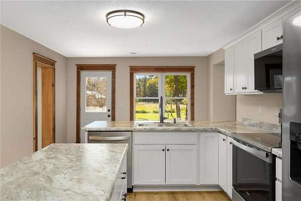 Charming Hobby Farm Retreat on 10 Private Acres. Welcome to your peaceful country escape! Nestled on 10 beautiful acres, this property is a dream come true for hunters or hobby farm enthusiasts seeking privacy, space, and a connection to nature. Whether you envision hunting on your own property or envision large gardens, raising animals, or simply enjoying the quiet, this property offers endless possibilities. The completely remodeled two-story home blends modern comfort with classic farmhouse charm. Inside, you'll find a thoughtfully updated layout featuring all-new flooring, including durable LVP throughout the main level and plush new carpeting upstairs. The stunning kitchen is equipped with stainless steel appliances, self-closing cabinetry, and a clean, contemporary design that still feels warm and inviting. The primary bedroom is on the main level and upstairs, two spacious bedrooms each offer walk-in closets and tranquil views of the surrounding landscape. The main level also features a convenient laundry room for added functionality. Outside, there's ample room for gardens, a small barn perfect for horses or your choice of farm animals, and all the peaceful space you could want to enjoy rural living at its finest. Don’t miss this rare opportunity to live the country lifestyle without sacrificing modern comforts!