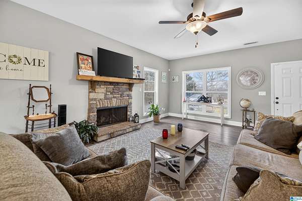 First time on the market! This beautiful custom built home sits on just under 3 acres and offers space, comfort, and peaceful surroundings. Inside, you'll notice the abundance of natural light that fills the home through large windows, creating a warm and inviting atmosphere throughout. The open floor plan flows seamlessly from the living room to the kitchen, making it perfect for gatherings with family and friends, or for everyday living. A cozy stone fireplace adds character to the main living area. The kitchen features soft close cabinets, beautiful countertops, and a walk in pantry that provides excellent storage and organization. All bedrooms are generously sized and each one includes its own walk in closet. The master bedroom offers double sinks and a tile shower. Outside, enjoy the privacy of the wooded setting, wild blackberries growing in the backyard, and frequent wildlife sightings. This home offers a peaceful lifestyle and the chance to enjoy nature right outside your door.