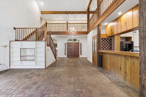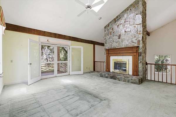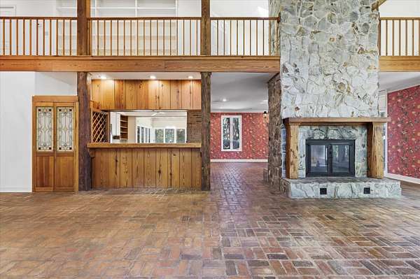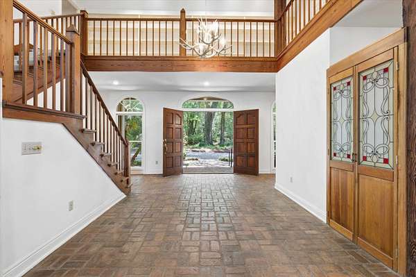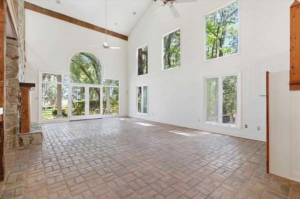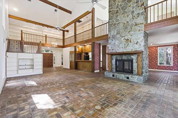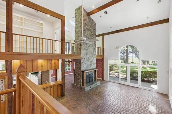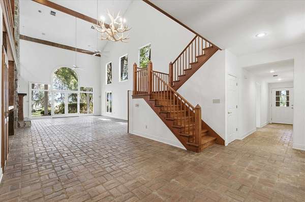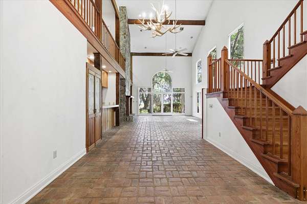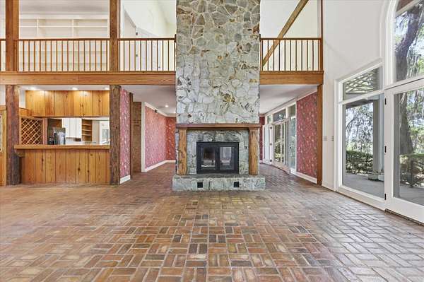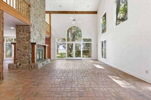 Nestled on 3.8 private acres along the shores of Lake Iamonia, this one-of-a-kind property offers a rare opportunity to create your dream waterfront estate. With 4 bedrooms and 4.5 baths, the home is rich in character, history, architectural detail, and timeless craftsmanship-ready for your vision and updates. Step inside to soaring ceilings, striking brick paver floors, and beautiful woodwork that immediately set the tone for the home's warmth and individuality. A dramatic two-story, double-sided fireplace anchors the main living spaces, creating an unforgettable focal point, while an open floor plan allows for effortless flow and endless design potential. Unique, charming touches are found throughout-from the statement antler chandelier to the custom finishes that make this home truly special. Expansive windows and multiple living areas bring in natural light and showcase the peaceful, wooded setting. Outdoor living is just as inviting, with multiple spaces to relax, entertain, and take in the serene lakefront views, from nearly every room in this home. Whether you envision quiet mornings by the water or hosting gatherings under the stars, the setting is unmatched. A rare blend of acreage, lake frontage, and architectural character, this is an incredible opportunity to reimagine a truly special property in one of Tallahassee's most scenic locations.