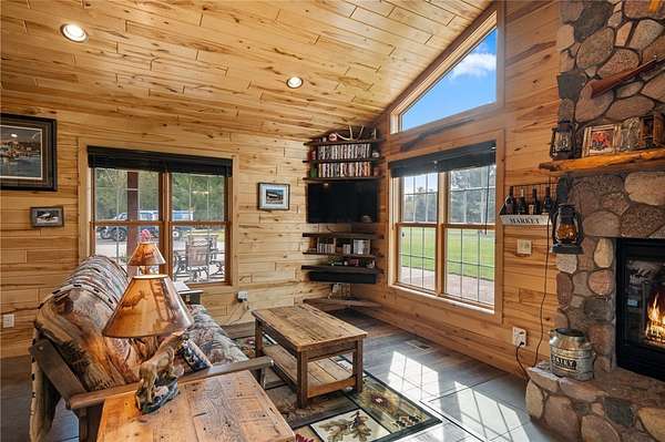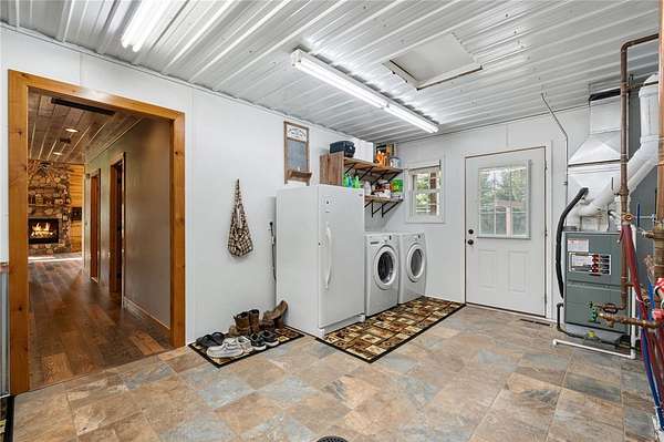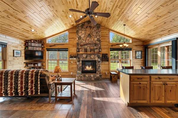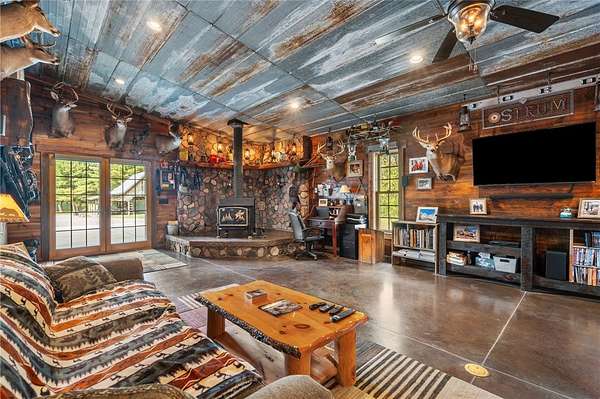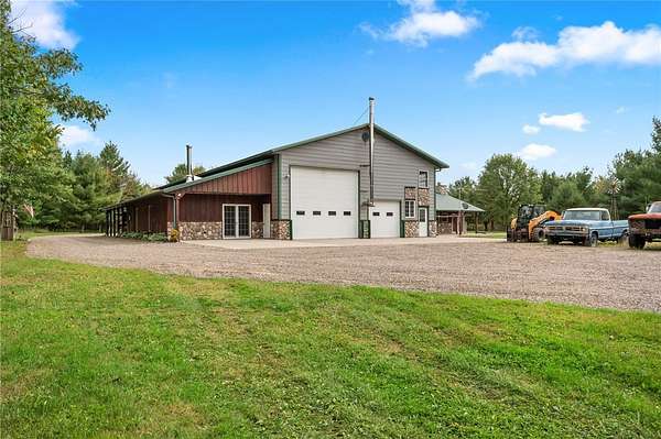 Located an hour from the Twin Cities, this extraordinary property offers the perfect combination of privacy, recreation, & versatile living. Set back more than 1,700 ft from the blacktop township road, the setting provides unmatched seclusion on 59 acres of woods, trails, & tillable ground teeming with deer, bear, turkeys, & other wildlife. Whether you're looking for a private retreat, a hunting haven, or a place to blend work & play, this shouse-style property has it all. The 40' x 96' heated workshop is a standout feature, designed w/16' sidewalls, 4 overhead doors, in-floor & wood heat, & a mezzanine for added storage. It's perfectly suited for hobbyists, business, or anyone in need of workspace. Connected to the shop is the comfortable 26' x 50' living quarters, complete w/ forced-air heat, cozy wood-burning fireplace, & a free-standing woodstove for that true cabin-like warmth. Entertaining or relaxing w/friends, the property also includes a spacious 18' x 44' mancave with a bar, along w/attached 18' x 40' lean-to featuring a concrete floor-ideal for gatherings, storage, or xtra projects. Outdoor living is just as impressive, w/more than 8,500 sq ft of concrete patios, aprons, & sidewalks, creating plenty of space for cookouts, gatherings, & simply enjoying the quiet surroundings. The land offers approx 6 acres of tillable ground, perfect for planting crops, establishing a large garden, or grazing horses or livestock. The remainder of the acreage provides recreational trails & woods for ATVing, hunting, or exploring. Despite the property's incredible seclusion, modern conveniences are close at hand. High-speed internet allows you to work from home with ease, & the Amery Hospital is just a few miles away. For those who want even more land to roam, an additional 40 acres is available for purchase. This property truly is a rare find-combining unmatched privacy, endless recreational opportunities, and comfortable living, all within an easy drive of the Twin Cities.