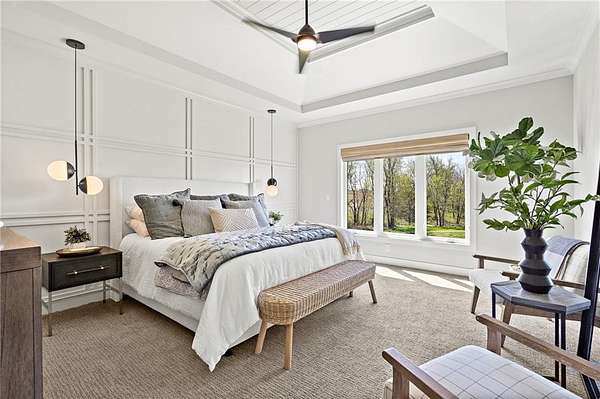 Custom, brand new Edgewater floor plan under construction by Pfeifer Homes on a 3.31 acre estate lot in Creekside Ranch, offering an elevated blend of refined country living and effortless access to city luxuries. Just minutes from premier shopping, dining, golf, and everyday conveniences, this residence delivers a secluded, estate like setting without sacrificing proximity to everything you love. The main level showcases a sophisticated primary suite with an expansive walk-in closet and a designer spa bath, complemented by a second bedroom or grand executive office for flexible living. A gourmet kitchen anchors the home with an impressive island, high-end appliances, and a fully outfitted butler's pantry with its own prep kitchen, ideal for catered events and elevated entertaining. The great room opens to a beautifully appointed covered deck with a second gas fireplace, creating a seamless indoor-outdoor sanctuary that frames serene acreage views. The walk-out lower level lives like a private retreat, featuring a spacious recreation lounge with half bath, stylish wet bar, and two additional bedroom suites, each with its own private bath for ultimate comfort. A three car garage, 4 bedroom/4.5 bath layout, and signature Pfeifer craftsmanship complete this meticulously designed estate, perfect for buyers seeking a truly luxurious new construction home in a rare, acreage setting. Pictures are of a similar layout design.