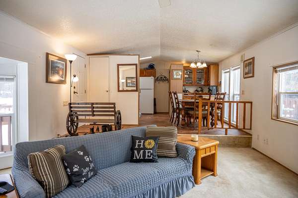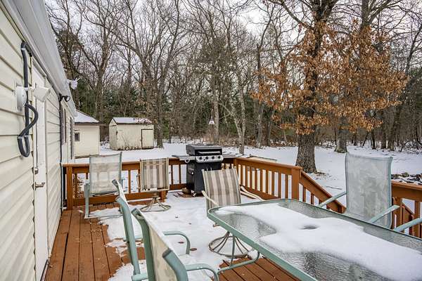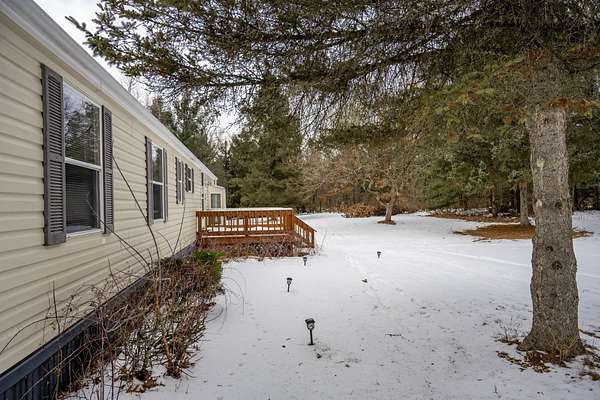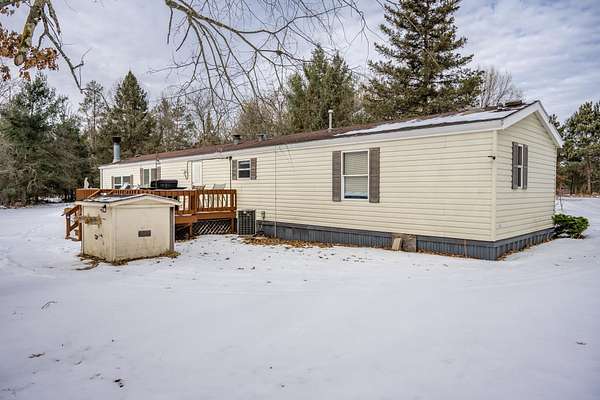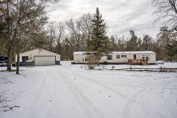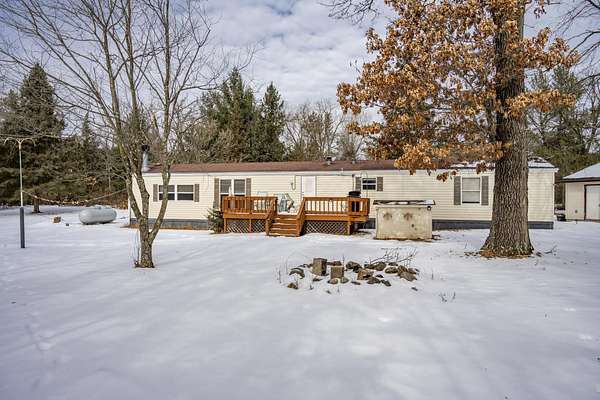 Your Northwoods getaway awaits on 5 wooded acres. This 1994, 1,280 sq ft single wide mobile home offers 3 bedrooms and 2 full baths, including a private primary suite- perfect for hosting family and friends. Ideal as a weekend retreat, seasonal escape, or full-time residence. Cozy up indoors with a wood-burning fireplace, or gather outdoors around the fire pit area for evenings under the stars. Enjoy the outdoors from the large 11x19 back deck, surrounded by mature trees and abundant wildlife. The property includes a detached 32x36 two-stall garage, 12x8 wood shed, and 12x8 storage shed- plenty of space for boats, ATVs, UTVs, and recreational gear. The corner-lot setting provides added privacy and easy access. Located just 6 miles from the Wisconsin River and approximately 15 miles from Wisconsin Dells, offering boating, fishing, hiking, hunting, and all the attractions the Dells has to offer. ON ATV route and close to snowmobile trails. A perfect basecamp for year-round recreation.