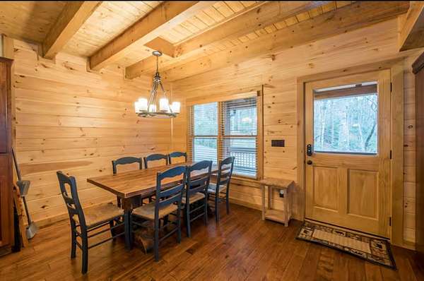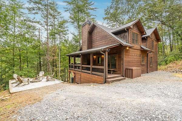 Your Dream Creekfront Getaway Awaits! Tucked away on 2.03 private acres in desirable Coosawattee River Resort, this fully furnished 4BR/3.5BA log-sided cabin delivers the mountain retreat everyone is searching for -- with sweeping year-round mountain & creek views and 200+ ft of Mountaintown Creek frontage! Wake up to the sound of rushing water and enjoy mornings on the wrap-around porch overlooking the treetops, then take the wooded staircase down to the creek for fishing, exploring, or quiet moments by the water. Inside, the layout is ideal for hosting and making memories -- Main-level primary suite + guest half bath Open concept great room with vaulted ceilings & floor-to-ceiling stone fireplace Upper level loft perfect for games or additional hangout space Two generous guest rooms & full bath upstairs Finished terrace level with second living area, 4th bedroom & full bath -- a perfect guest or rental setup Whether you're looking for a full-time home, a weekend escape, or a proven short-term rental, this cabin checks every box. Bonus -- it was even featured on HGTV's House Hunters! Located inside an amenity-rich resort with pools, fitness center, tennis, river access, fishing, trails & more, you'll have endless ways to enjoy the mountains. Showings are easy -- come experience the views and the creek for yourself!