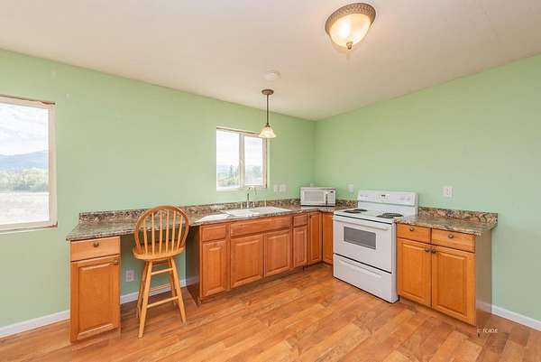 Discover the peace and beauty of country living with this inviting 2-bedroom, 1-bath home offering 1,008 sq. ft. of cozy comfort on 7.18 acres of open, usable farmland. Perfectly set among sweeping valley views and picturesque pasture, this property provides the ideal blend of simplicity, privacy, and natural beauty. Step inside to find a well-kept home built in 2006, featuring laminate flooring throughout and warmed by a classic old-fashioned wood stove that creates a cozy ambiance all winter long & Monitor heater. Cooling is handled by an efficient wall A/C. Outdoors, the land offers endless possibilities. Enjoy creek frontage, a seep well, and a septic system already in place. A detached storage room with power provides extra utility, along with a detached metal carport for covered parking. The acreage is flat, open, and fully usable-ideal for farming, animals, gardening, or simply enjoying wide-open space. A lovely trail leads down to the creek, perfect for peaceful walks and unwinding in nature. Whether you're seeking a homestead, a retreat, or a starter property with room to grow, this gem offers unmatched potential in a serene valley setting.