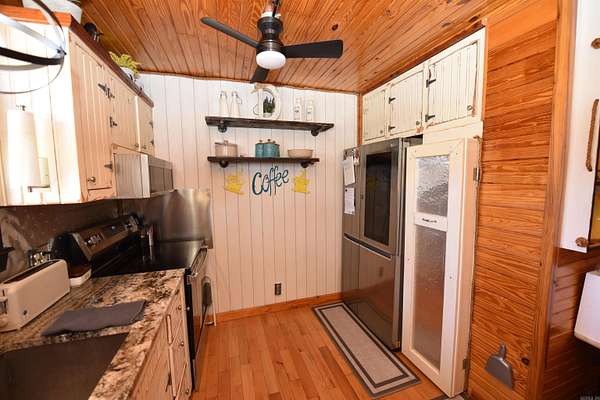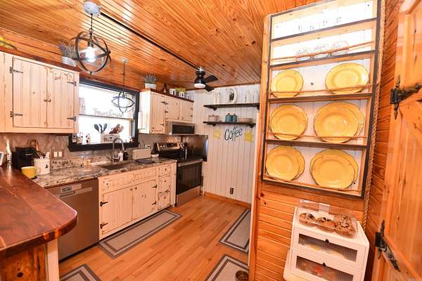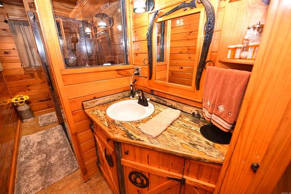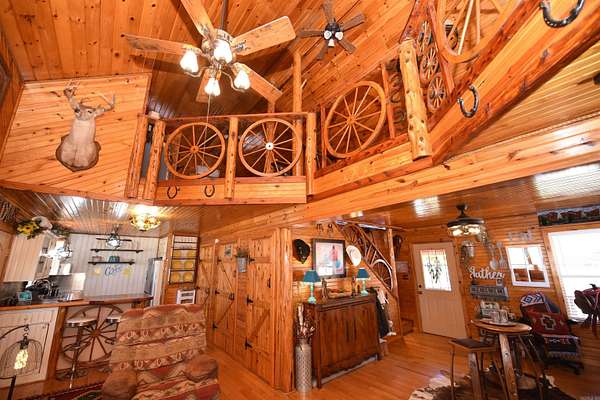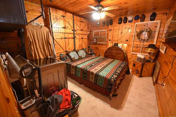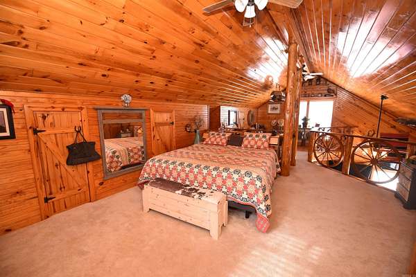 Unique rustic farm getaway or full-time residence! This charming log cabin offers tons of owner-added storage and a warm, inviting country feel. Enjoy newer appliances and granite countertops in the kitchen, plus a mostly furnished interior--move-in ready with rustic charm throughout. Outside you'll find an insulated workshop, an insulated small barn/storage area with space for a horse, and a gated entrance for added privacy. Relax on the covered front and back porches, take a dip in the above-ground pool, and bring your pets--this property is pet friendly! There's also a greenhouse and garden area for those with a green thumb. If you've been searching for peaceful country living just minutes from the lake, this one is a must-see--only 10 minutes to Greers Ferry Lake. Don't miss this truly one-of-a-kind property! Lots of furniture remaining. Lots of front porch and back porch furniture and decor items remaining. Shop contents are available for sale. Riding Lawn Mower is available for sale. The kitchen features pull out shelving. The cabinets and closets have automatic lighting. The owner has been so creative with all the details. This is must see property with so much character.