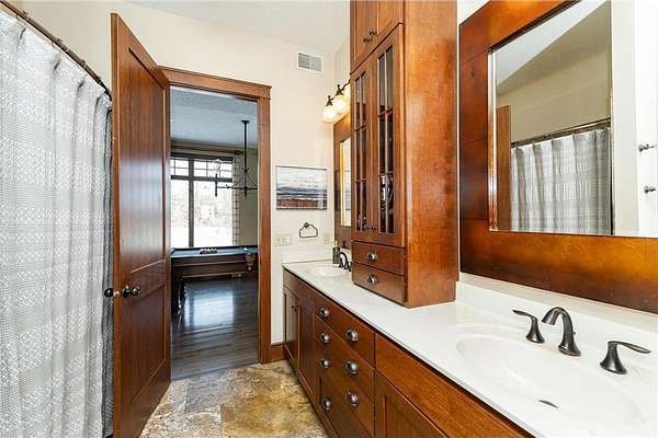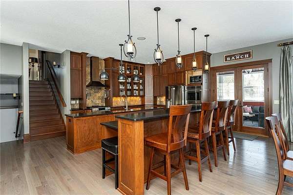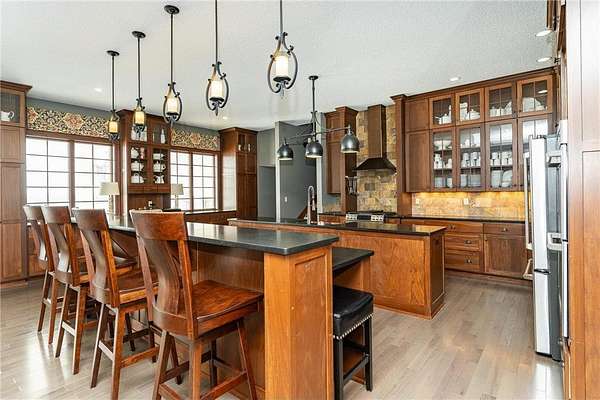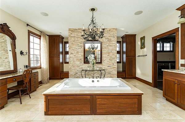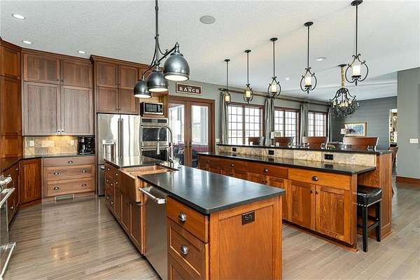 Inside, the home blends warmth and function. A formal dining room anchors gatherings, while two separate living rooms and a full sunroom offer flexibility for quiet moments or entertaining. The kitchen stands out with two islands, custom copper sink, double ovens, and space to host with ease. Two fireplaces add comfort and character, creating inviting spaces year-round.