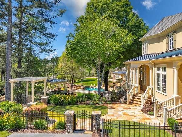 Step into an unparalleled realm of elegance at 10955 Stroup Road, where lakeside luxury meets architectural magnificence in this Stephan Fuller-designed estate. Nestled on 11.62 acres in Roswell's most prestigious enclave, this gated masterpiece boasts an expansive 26,000 square feet of sophisticated living space. Designed for the most discerning of buyers, this property features 6 bedrooms, 10 bathrooms, and an array of resort-style amenities amidst lush, meticulously landscaped grounds. Be welcomed by a grand two-story foyer into the main level, awash in natural light. Twelve-foot ceilings, a palatial primary suite, and a large kitchen open to a cozy keeping room are just a few of the spectacular features of this home. Tailored to accommodate every lifestyle, the upper level has four spacious bedrooms, each boasting an en-suite bathroom alongside a versatile bonus room. The lower level is a haven for entertainment and leisure with a home theater, billiards room, and fitness studio. The pi ce de r sistance is a spa oasis featuring a massage room, sauna, and steam shower. The estate also hosts a 25-meter olympic indoor lap pool, a soaking tub, and a convertible full court for tennis and basketball, adaptable for pickleball. Security is paramount with a fortified gated entrance, reinforced steel construction, and a comprehensive emergency system, including a generator and lightning protection. Located just minutes from top schools and the vibrant Canton Street, this estate offers the perfect blend of seclusion and accessibility.