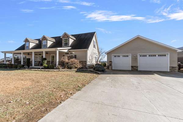 Welcome to your dream home nestled in the heart of nature with breathtaking views of the majestic Smoky Mountains. This stunning Cape Cod style residence offers the perfect blend of comfort, style, and panoramic beauty. 4 spacious bedrooms providing ample space for relaxation and privacy. 3 bathrooms. Nice size with 2722 sq. ft. this home provides generous living spaces for family and entertainment. The classic Cape Cod architecture creates a timeless charm, while the open concept design enhances the sense of space and connectivity. Situated on a vast 5-acre lot, this property is an outdoor enthusiast's paradise. The expansive grounds offer endless possibilities - from creating your own garden oasis to room to enjoying outdoor activities with family and friends. With a barn at the front of the property there is room for livestock or horses. There is lots of room for your toys with a 900 sf drive through 2 car detached garage as well as a 850 sf metal building that provides ample storage space. There are 2 carports with one tall enough for an RV. Covered porches with ceiling fans give so much room for entertaining. Indulge in awe-inspiring views of the Smoky Mountains from the comfort of your home. Whether you're sipping your morning coffee on the porch or hosting a gathering in the backyard, the scenic backdrop will leave a lasting impression. The interior boasts a seamless open concept layout, seamlessly connecting the living, dining, and kitchen areas. Natural light floods the space with the large windows, accentuating the warmth of hardwood floors and the elegance of modern finishes. There is room to grow with 2 water taps at the front of the property for the possibility of another home or 2. The barn at the front of the property has 3 stalls. Hot tub on back covered porch is great for relaxing. New upstairs hvac installed July 2025. Conveniently located to shopping, restaurants, Douglas Lake, Cherokee Lake and it's just off of I-81, this home offers tranquility without sacrificing accessibility to amenities, schools, and entertainment. 30 minutes to Knoxville, 25 min.to Sevierville, and less than 10 minutes to Morristown. This modular Cape Cod retreat truly epitomizes tranquil country living with incredible mountain views. Owner/Agent