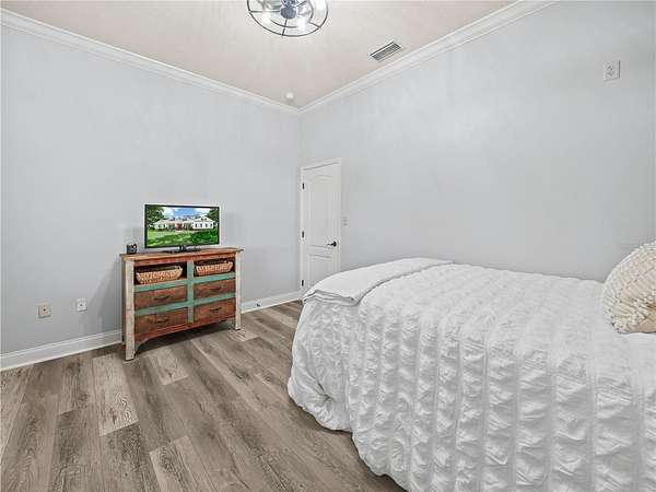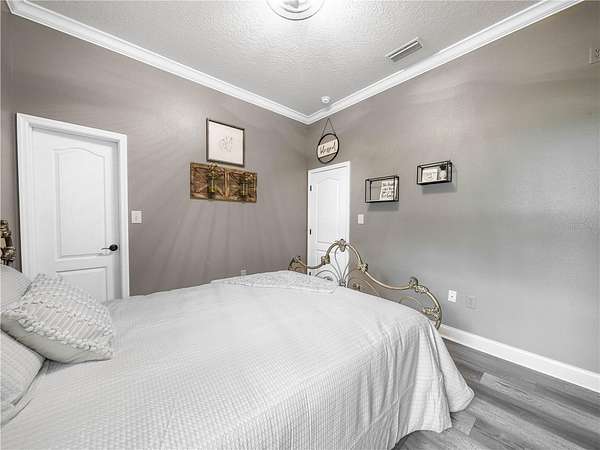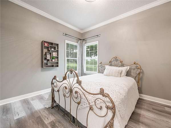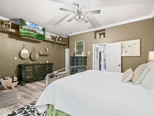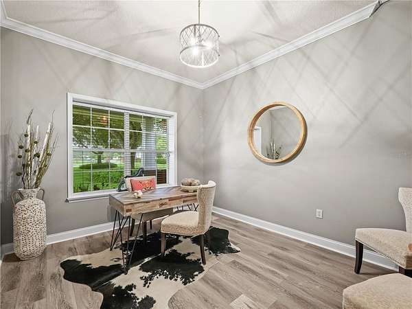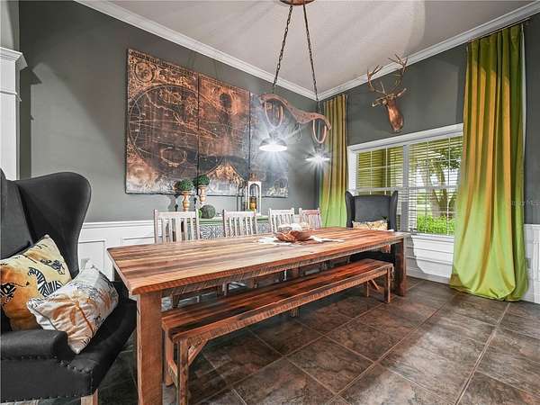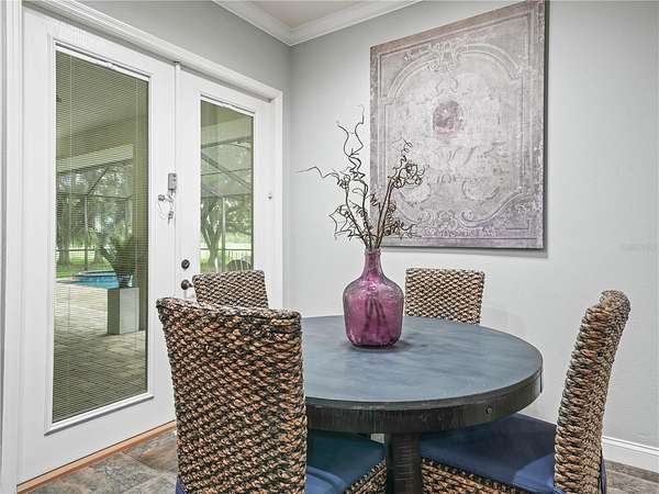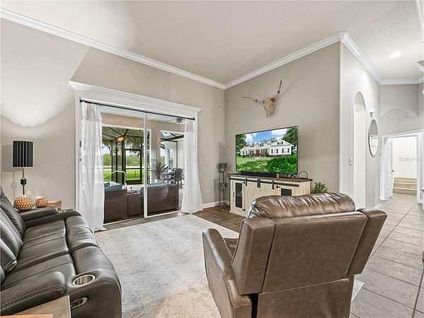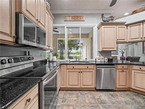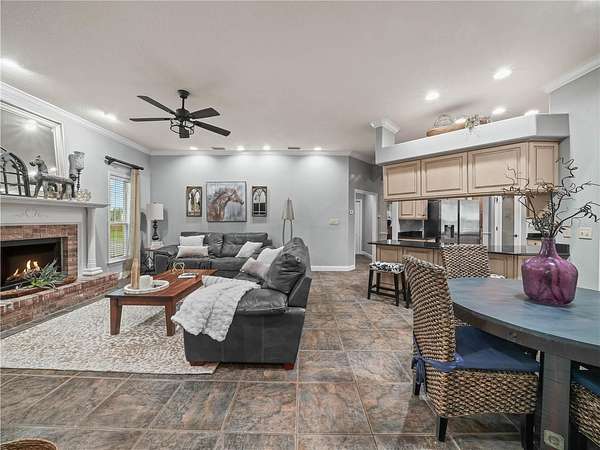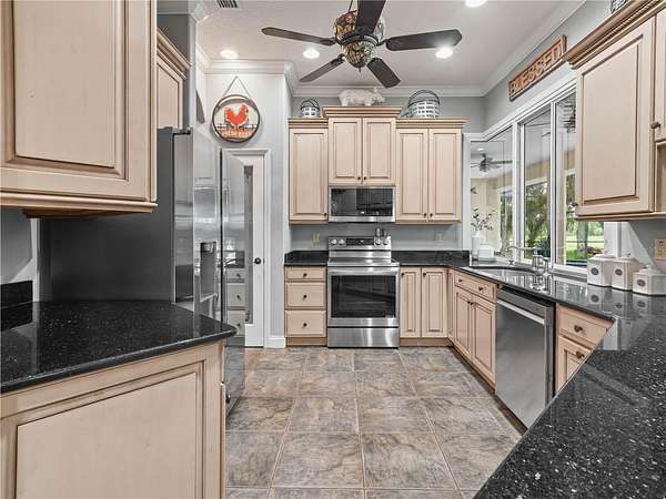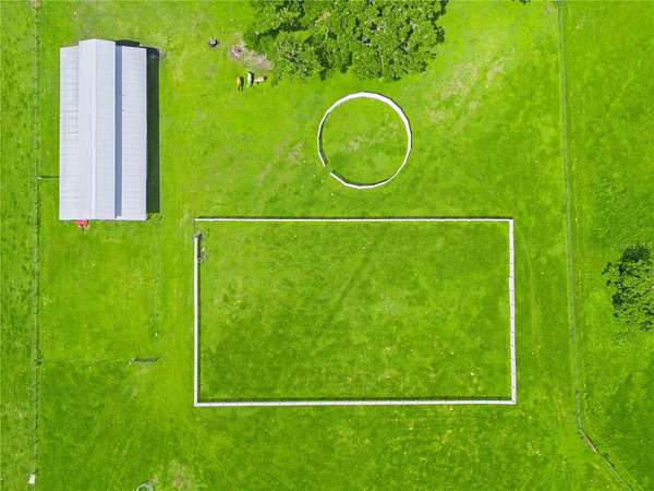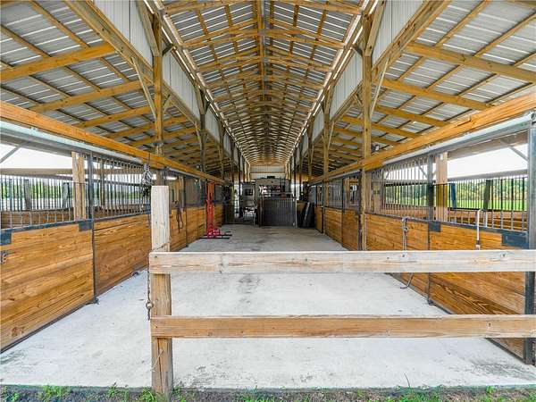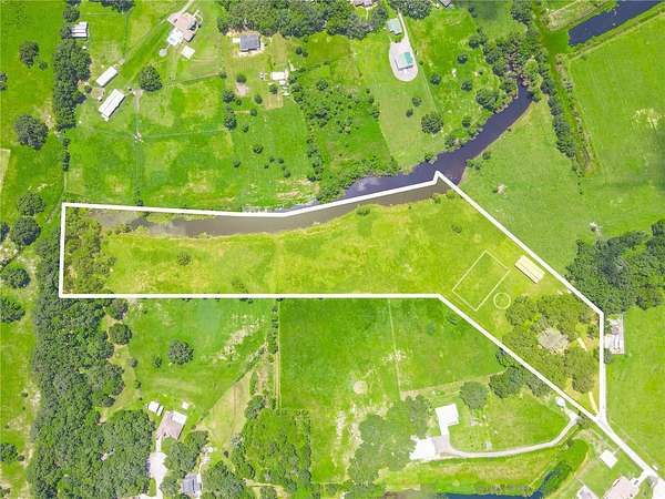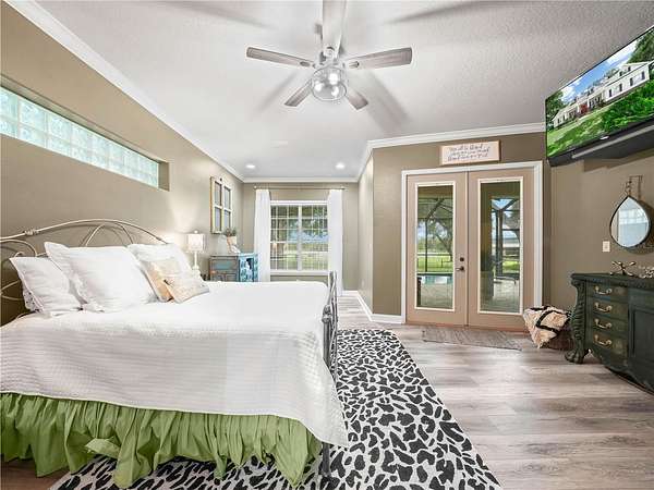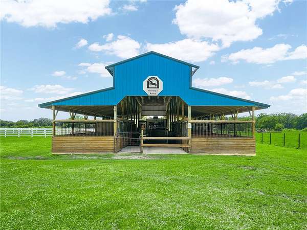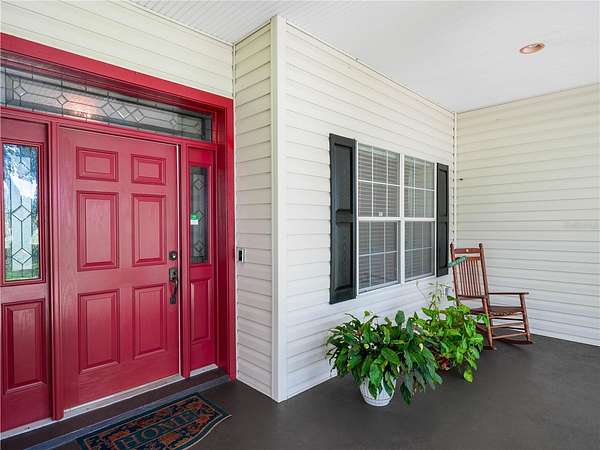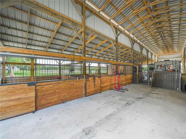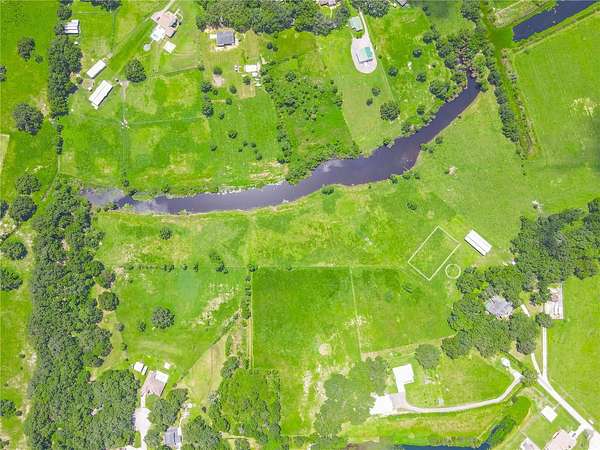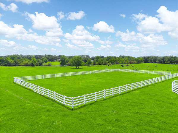 Nestled on a sprawling approximately 14.49-acre plot, this captivating house offers a peaceful and private retreat. The home features four bedrooms and three bathrooms, encompassing approximately 2,901 square feet of thoughtfully designed living space. BRAND NEW ROOF 4/2025. The majestic oaks lining the entrance create a charming and inviting atmosphere. Carefully designed with 6 courses of block and block foam filled walls. The window and sliding glass doors are double paned, the garage door insulated. Inside, the home boasts a double foyer that opens to the formal dining room and living room, featuring soaring ceilings, decorative niches, and crown molding. The private office, with its large window, provides an ideal setting for a home workspace. The kitchen showcases Kraftmaid cabinetry, black galaxy granite countertops, and brand-new appliances. The separate dinette area offers a private entry to the lanai through French doors, creating a serene and inviting space. The expansive family room, with its wood-burning fireplace, provides ample room for family gatherings and relaxation. The primary bedroom, a generously sized suite, features a private sitting area and French doors leading to a private entry to the pool area.The primary bathroom boasts a decorative tile shower, luxury vinyl plank floors, a soaking tub, double sinks, double walk-in closets, and a separate water closet. The inviting lanai overlooks the lush pasture, offering a calming environment. The property also boasts an impressive 1,300 feet of creek, 600' walk from creek with teeming with fish, and a 50-by-95-foot, 6-horse stall barn, equipped with automatic water and 100-amp service, allowing for future loft expansion and 12 x 12 tack/tool room. Horse lovers will love white vinyl fenced riding arena with round pen. The property also features an oversized 2.5-car side-entry garage and ample parking on the long concrete driveway.
