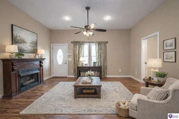 Welcome to 1096 Eastview Road in Cecilia, KY -- a rare opportunity to own a private, recreational farm on approximately 58 acres (per deed). This custom-built home, constructed in 2014, offers 2,974 square feet of living space with 3 bedrooms and 2.5 bathrooms, plus a spacious recreation room ideal for entertaining, hobbies, or a home theater. The home features both propane and electric fireplaces, providing comfortable and inviting living areas. The property is extremely private and secluded, making it ideal for those seeking a peaceful rural lifestyle with exceptional outdoor amenities. Highlights include a private golf practice green with 14 tee boxes extending out to approximately 225 yards, multiple stocked ponds for fishing and recreation, and abundant wildlife, including trophy whitetail deer harvested on the property. Additional improvements include a large 40X50 detached garage with 12ft lean to with water and electric service, as well as a separate RV storage building equipped with 50-amp hookups, providing excellent space for equipment, recreational vehicles, and storage needs. This property offers a unique combination of residential comfort and recreational opportunity. Suitable for hunting, fishing, golfing, or simply enjoying privacy and open space, this is a versatile property in a desirable rural Hardin County location. Conveniently located yet offering total seclusion, this property is well-suited for a full-time residence, or recreational retreat. Buyer to verify acreage, square footage, and all property details. Some Photos are Virtually Staged