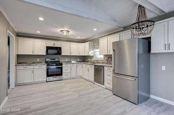 - Beam Ceiling(s), Cathedral Ceiling, Ceiling Fan(s), Eat-In Kitchen, Laminate Counters