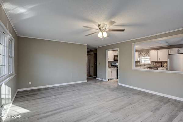 - Beam Ceiling(s), Cathedral Ceiling, Ceiling Fan(s), Eat-In Kitchen, Laminate Counters