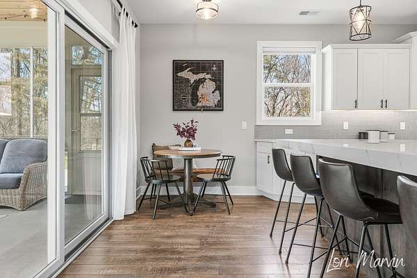 5 Private Acres. 2020 Build. Zero-Step Living. Outbuilding. This is the one buyers wait for--and rarely find. Tucked away on five private, wooded acres and surrounded by the Flat River State Game Area, this 2020-built home delivers something that is getting harder to find--privacy, functionality, and move-in-ready condition without compromise. From the moment you arrive, the setting does the work. Secluded and surrounded by nature. Yet designed for how people actually want to live. Zero-step entry from the front door, garage, and screened-in porch creates true main-level accessibility--something buyers are actively searching for but rarely get. Inside, the home opens to a bright, expansive living space where a massive picture window pulls the outdoors in and fills the home with natural light. Enjoy the Oversized kitchen, open and built for connection, with quartz countertops, luxury vinyl plank flooring, and seamless flow into the living area. The main level offers two bedrooms, one with a private ensuite with a walk-in closet--giving flexibility for guests, multi-generational living, or keeping everything you need on one level. Upstairs, the primary suite becomes a true retreat. Dual walk-in closets. Private separation. And a dedicated flex space that works as an office, studio, or quiet escape--whatever life requires. Outside is where this property separates itself. A three-season screened-in porch extends your living space. A private hot tub area creates a place to unwind. The fully fenced backyard adds both function and peace of mind. And then--the outbuilding. A newly built 30x40 pole barn with a 10-foot overhang gives you the space most properties simply do not have. Storage. Hobbies. Equipment. Recreation. It is all here. Add in multiple storage sheds and a covered outdoor kitchen attached to a log-style cabin, and you have a property built not just for living--but for using. This is not just a home. It is a setup. A place where you have space, privacy, and flexibility--without sacrificing quality or convenience. Opportunities like this do not come up often. When they do, they do not last. Showing starting Thursday April 2 at 6:00 pm. Offers due Tuesday April 7 at 11:00 am.