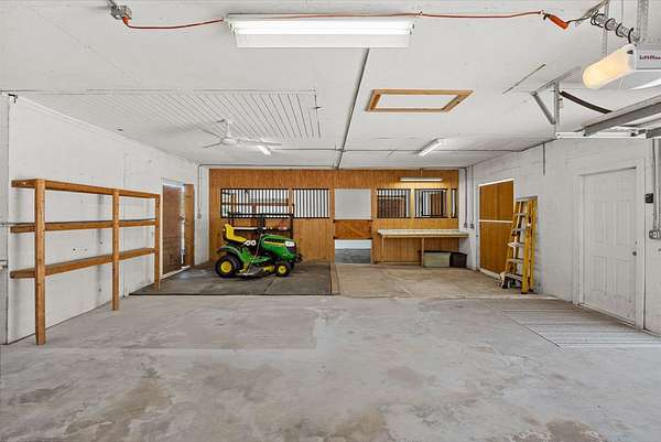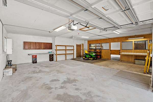 Five acres total, 2.5 acres with home, barn, and more off South dead end road. Adjacent 2.5 acres ready to build with separate entrance off North dead end road. Property is gated and fenced. The home has cathedral ceilings with a 14' coral rock wood-burning fireplace in the family room, with sky lights open to kitchen and breakfast area. Kitchen features Sub Zero refrigerator, Wolf convection oven, Bosch dishwasher. Washer, dryer and mini refrigerator in laundry room. Formal living room and dining room off foyer. Home has 4 or 5 bedrooms depending on use. Three and a half bathrooms. Master suite has sliders to pool, large bathroom with sunken shower, two sink areas and walk-in closet. There is a 15' X 12' office w/built in wood shelfs off master bedroom, could be children's room. Central vacuum system. 20' X 20' Bonus room used as bedroom or guest quarters between laundry room and 1 car attached garage. Exterior has 20' X 40' saltwater pool with jacuzzi style tub all screened, outdoor kitchen with Granite counters, 30" American Outdoor Gas Grill, Mini refrigerator, sink and storage. There is a 1350 SF barn with one car parking and John Deere tractor entry. Tractor and cart included with sale. Covered out buildings behind barn. Tennis court fully fenced could be pickle ball court. Mature landscaping with Avocado, Mango, and Orange trees. All furnishings within home included with sale. HOA is for roads $590.00 per year. Seller is a licensed Florida Real Estate Broker.