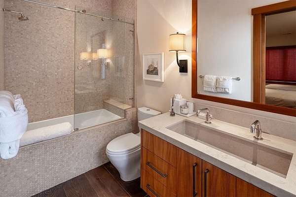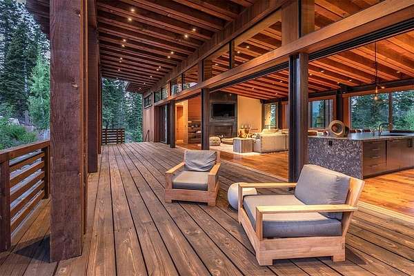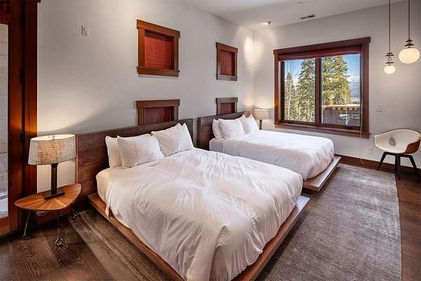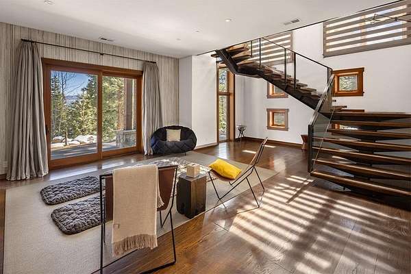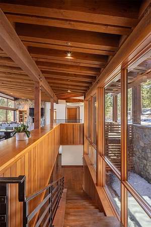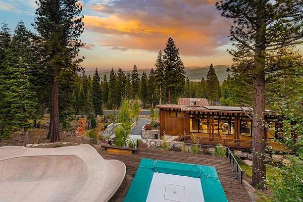 This 9,352-square-foot compound, including both a main residence and a separate guest house, is a true masterpiece of design and craftsmanship, set across two expansive lots totaling 2.88 acres in Martis Camp. The two homes, offering 6 bedrooms, 6 full bathrooms, and 3 half-baths, integrate beautifully with their natural surroundings, presenting breathtaking views of towering pines, Martis Valley, Mt. Rose, and the Carson Range. On the main level, the great room, dining room, and kitchen seamlessly open to the expansive panoramic vista of the surrounding mountains, enhancing the home's sense of space and connection to nature. The generous deck, accessed directly from the main floor, is an entertainer's dream, featuring a firepit, barbecue bay, and an outdoor lounge and dining area--perfectly designed for relaxation while taking in the sweeping views. A striking architectural feature of the main house is the pair of glass hallways that bridge the wings, making a bold visual statement. One of these hallways provides serene views of a tranquil creek system that cascades toward the guest house below. The primary suite, located in the south wing, spans two levels, with the sleeping area perched above and a spacious lower-level ideal for an office, gym, or library. A similar dual-level layout is mirrored in the north wing, which adjoins a native forest and lush gardens, offering the perfect balance of privacy and natural beauty. The lower level of the main home is designed for both relaxation and entertainment, featuring a media room with a mini-kitchen and bar, a cozy fireplace, and a glass-walled wine closet that can house an extensive collection. Two additional bedrooms on this level offer tranquil morning views across the private acreage that defines this remarkable estate. The grounds surrounding the main house are a carefully curated outdoor oasis, with grand staircases, verandas, a stunning water feature, a skate park, trampoline, and garden paths winding down to the guest house. This separate structure is designed for both comfort and functionality, featuring a spacious bedroom, kitchen, and a great room with a fireplace--ideal for hosting friends and family or for multi-generational living. Beneath the 2,054 sq. ft. guest house lies a spectacular 1,800 sq. ft. garage space--accessible by stairs, an elevator, or even a climbing wall--featuring soaring ceilings, scissor-lift doors, and dual access points. This exceptional garage can accommodate 9+ vehicles, as well as a full array of Tahoe recreational vehicles, from boats and off-road vehicles to bikes and snowmobiles, catering to both car enthusiasts and outdoor adventurers alike. Every inch of this home has been meticulously crafted to offer a seamless blend of modern luxury, functional design, and a deep connection to the surrounding natural beauty, creating an extraordinary living experience in a community that Forbes describes as possible "Possibly the Best Four-Season Private Community in the U.S"