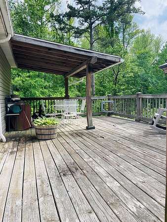 Discover the perfect blend of privacy and potential with this 12+ acre mostly wooded property, offering a peaceful, secluded setting. This spacious home features approximately 1,700 square feet of living space with 4 bedrooms and 2 full bathrooms, providing plenty of room for family and guests. The open-concept layout connects the kitchen, dining, and family room, creating a comfortable and functional living area. The kitchen was updated in 2017 with new cabinetry, solid surface countertops, and modern appliances. Step outside to enjoy a large, partially covered deck-ideal for relaxing or entertaining. A versatile storage building adds even more value, featuring finished interior space complete with electricity, flooring, drywall, ceiling, and lighting-perfect for a workshop, studio, or hobby space. NOTE: Road maintenance is shared between two property owners. Property is being sold "As Is." Inside is move in ready. Property is priced for buyer to make needed outside repairs/replacement roof & deck. Cash or conventional financing only; no VA, FHA, USDA, or VHDA loans. Don't miss this opportunity to own a private retreat with acreage and potential.